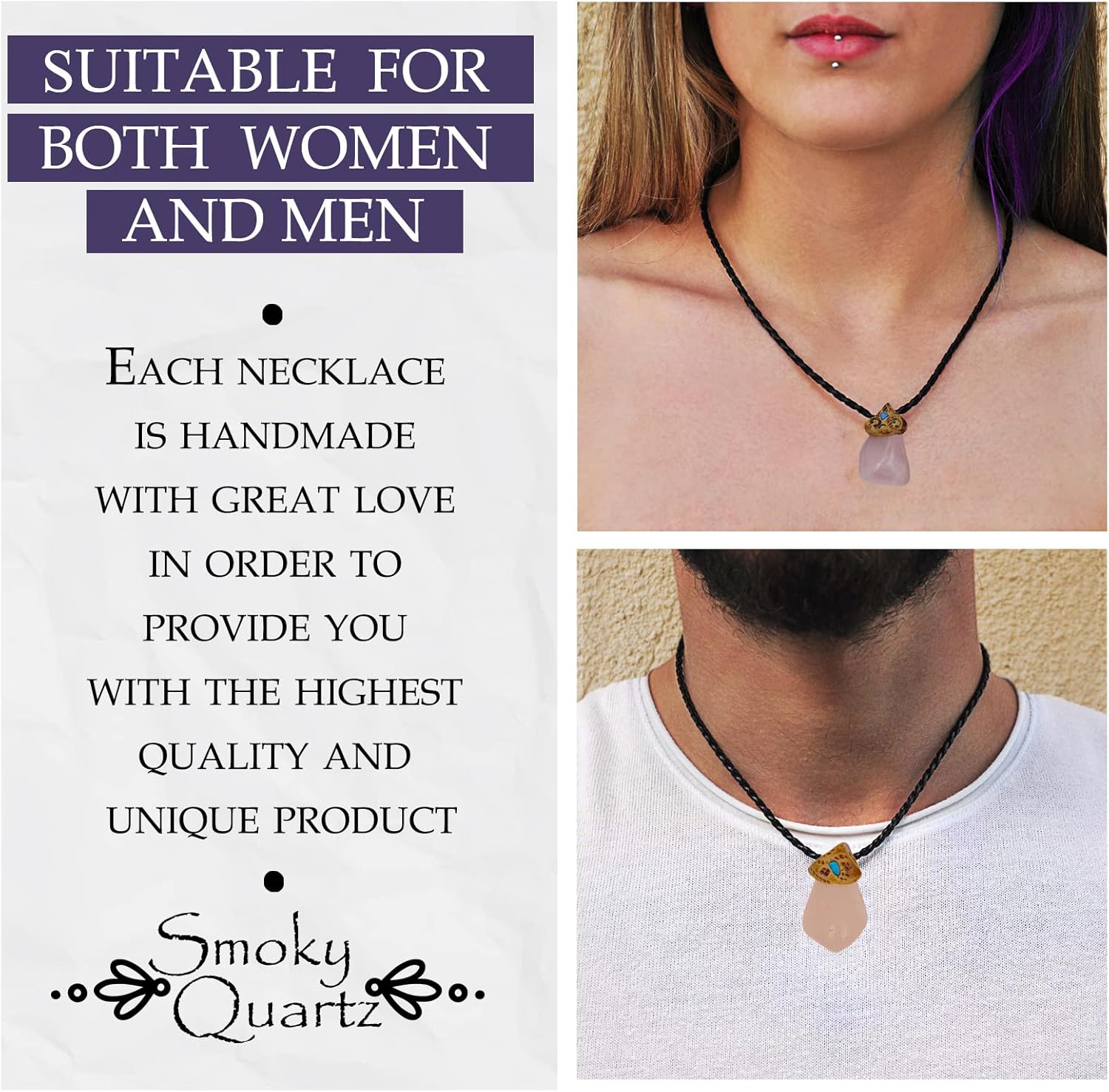 SMOKY QUARTZ Healing Crystal Necklace for Women & Men – Pendant Chakra Healing Crystal Jewelry for Adults, Spiritual Gifts w/Genuine Gemstone, Braided Faux Leather Chain, Handmade w/Love