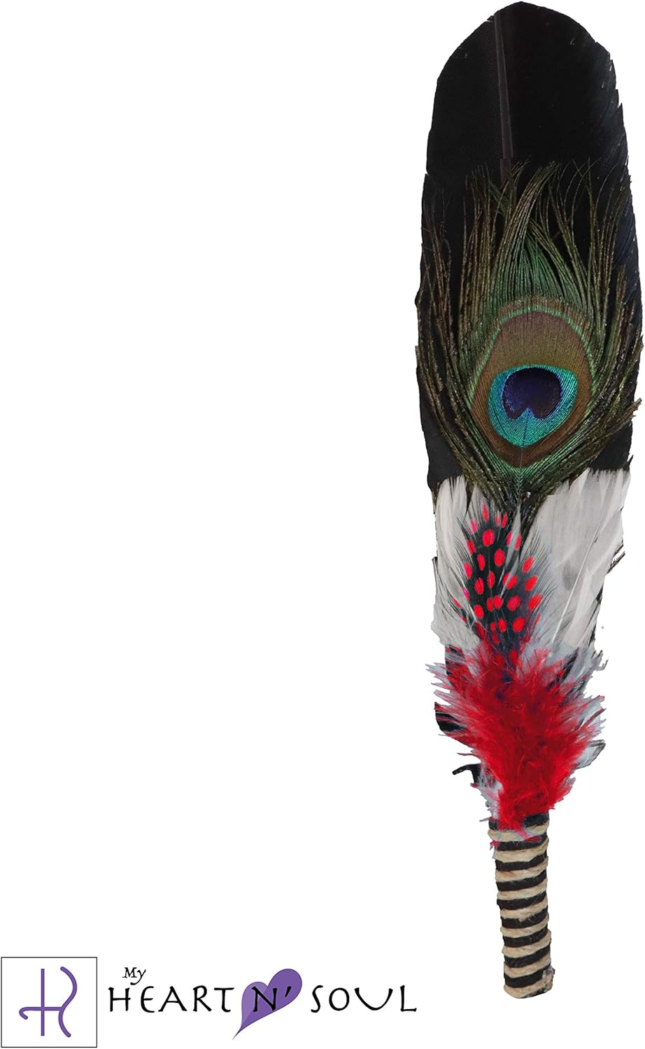 Smudge Feather, Turkey and Peacock, Unique Homecrafted Energy Cleansing Clearing Spiritual Practice House Smudging – Detailed Instructions for Beginners (Red)