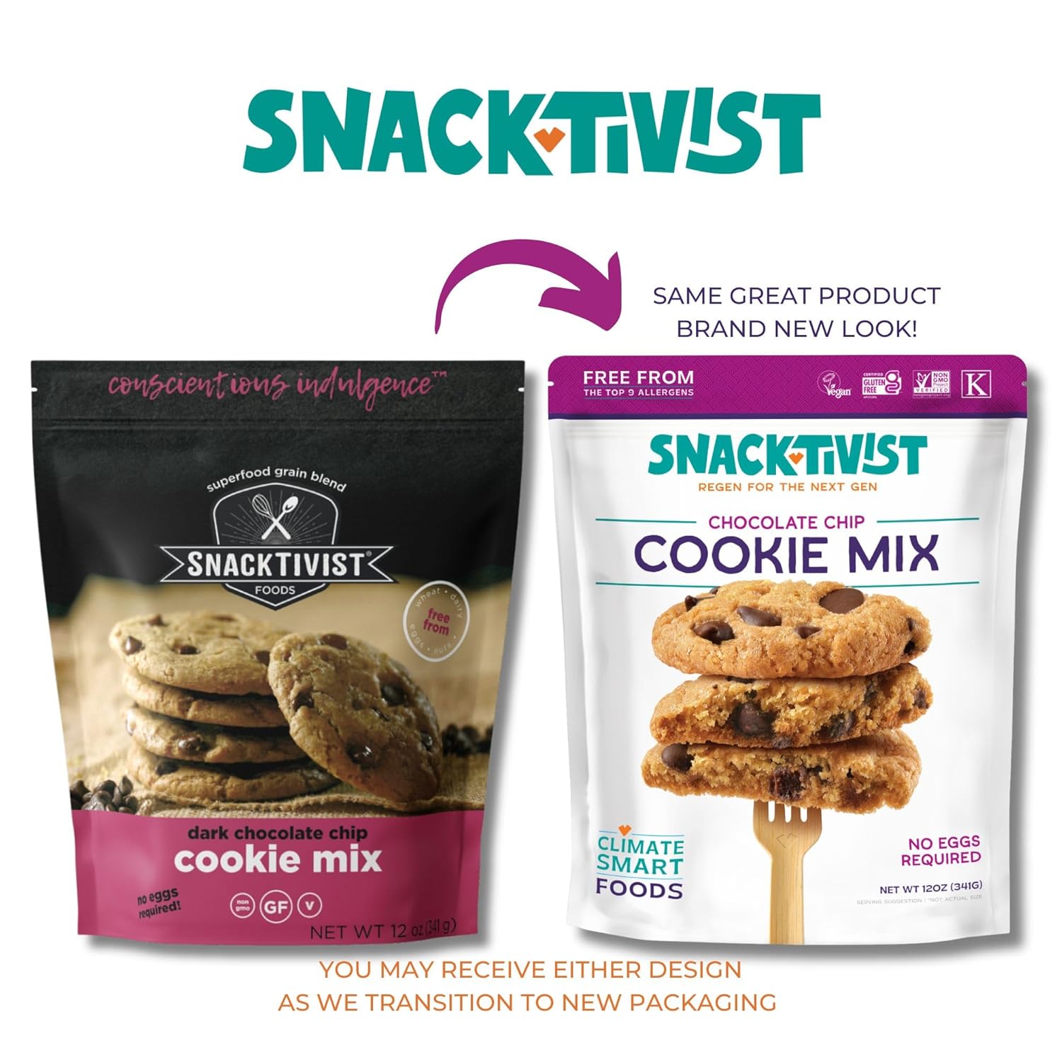 Snacktivist Foods Chocolate Chip Cookie Mix is gluten-free and is designed to be dairy-free and egg-free. To make your cookies extra rich you may also add eggs or butter to your taste and dietary restrictions.