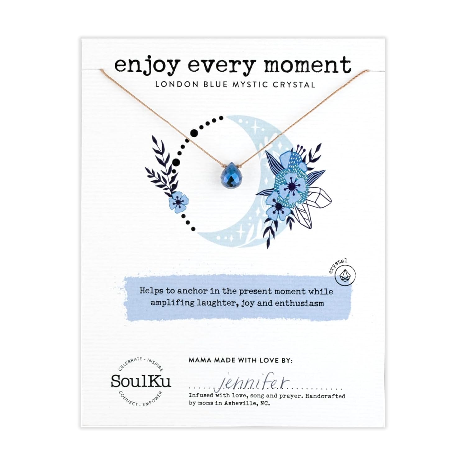 Soulku Mystic Necklace for Women & Teen Girls, Handmade Necklace with Crystals, Inspirational Stocking Stuffer Gift for Her, 18″ Nylon Cord, 18K Gold Plated Clasp (Blue, I Love You)