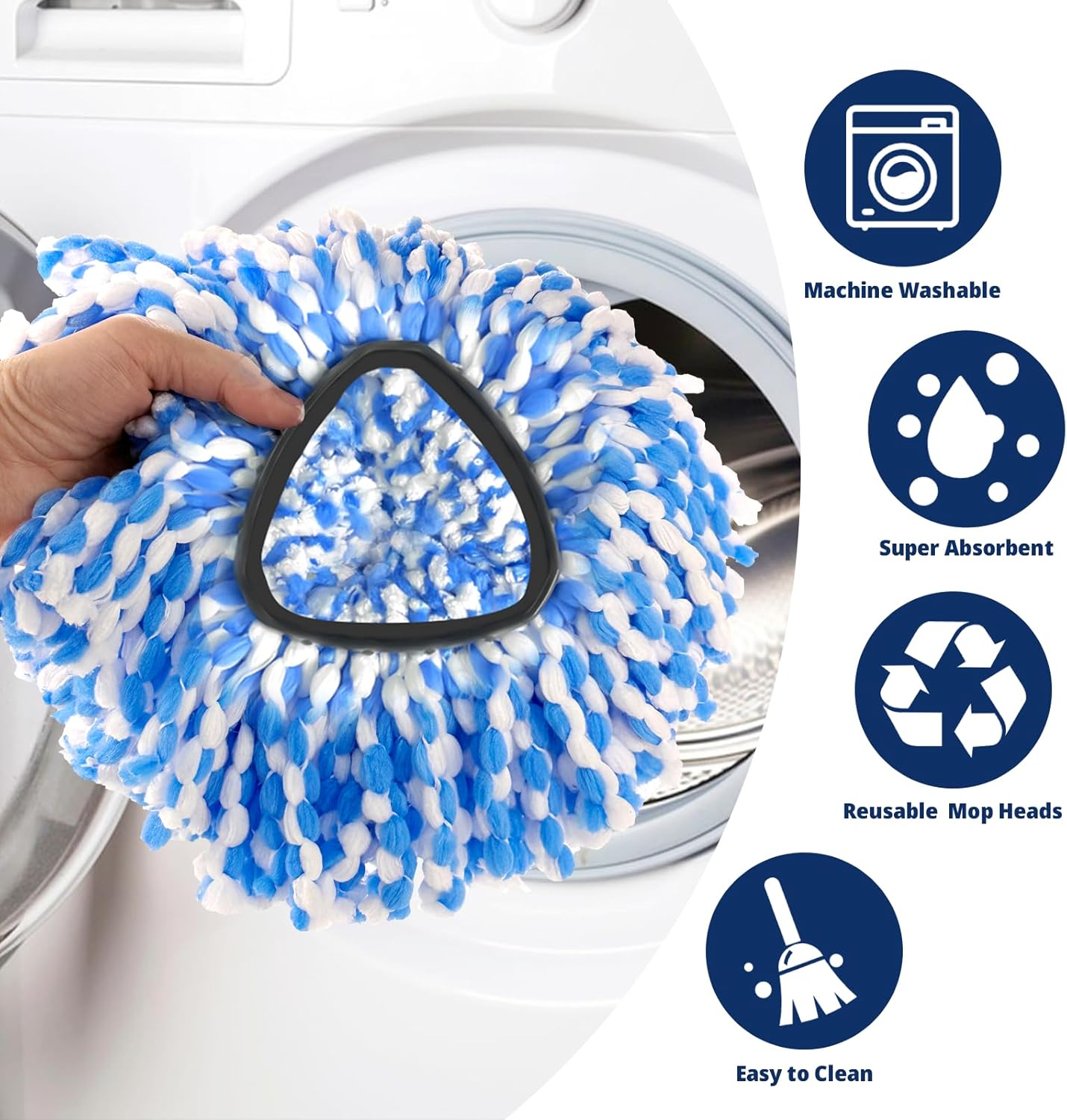 [MACHINE WASHABLE]- These mop replace heads are machine washable, freeing your hands after tiring housework. Simply wash and dry in the washing machine for reuse.