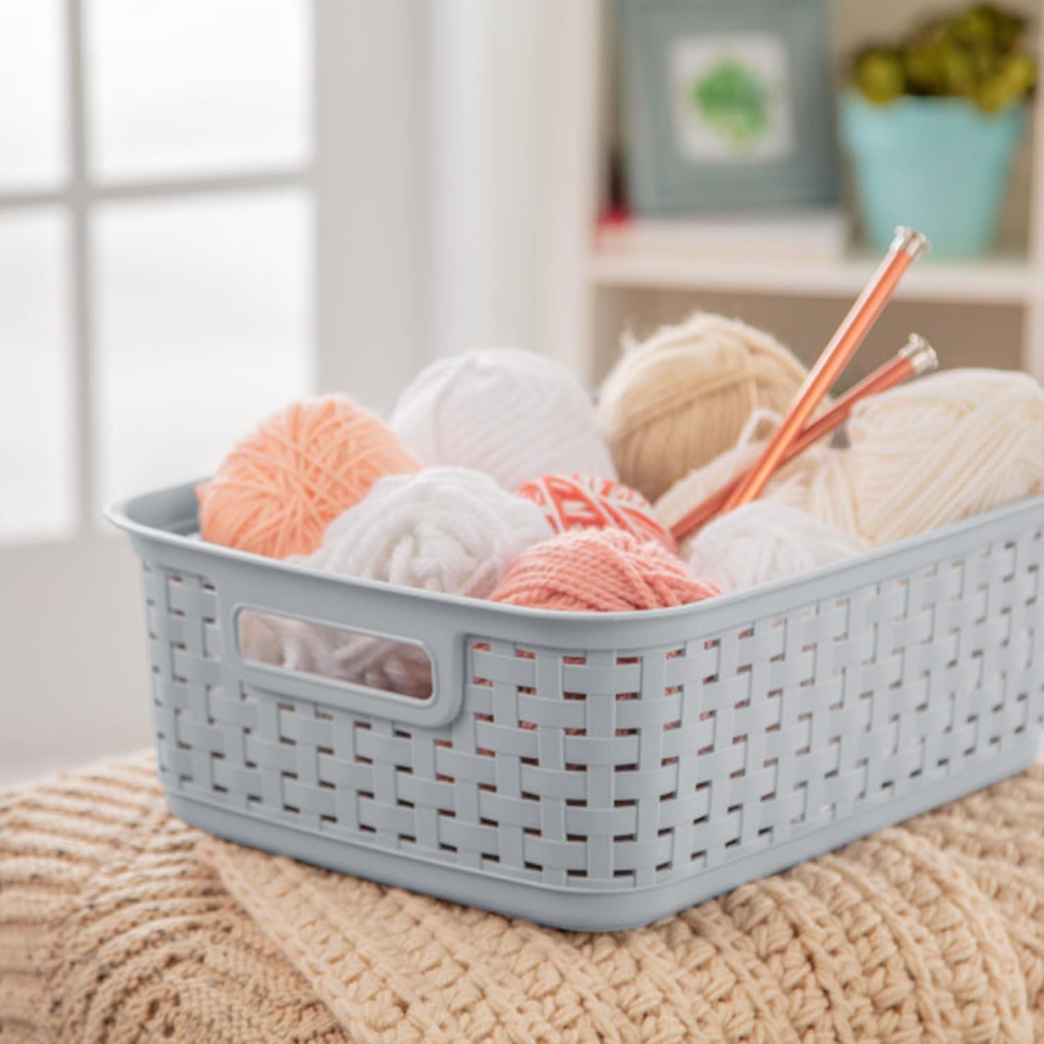 Sterilite Short Plastic Weave Storage Basket, Bin Organization for Countertops, Classroom, Tabletops and Shelves for Crafts, Jewelry, Gray, 6-Pack