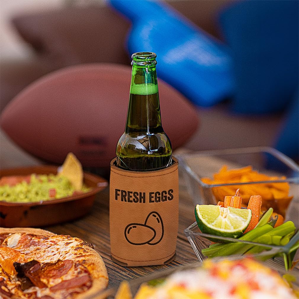 Introducing the ultimate accessory for your favorite beverages: our Leatherette can cover! Crafted with precision and passion, these koozies are more than just a way to keep your drink cold—they’re a statement of style and sophistication. Made from premium leatherette, each sleeve exudes elegance and durability, ensuring it withstands the test of time while adding a touch of luxury to every sip. But it’s not just about looks—they are designed for maximum functionality and convenience. With a universal fit that accommodates various can and bottle sizes, you can enjoy your favorite drinks without worrying about compatibility. Plus, the insulated lining keeps your hands warm and your drinks cold, ensuring every sip is as refreshing as the first. But don’t just take our word for it—our beer slevees have garnered rave reviews from satisfied customers who love the combination of style, quality, and functionality. GREAT BACHELOR OR BACHELORETTE PARTY IDEA: Unforgettable, our leatherette can covers for beer are the perfect gift for men and women for birthday gifts, anniversaries, Valentine’s day, graduations, housewarming, Christmas, Father’s Day, Mother’s Day or any other celebrations. These are good for: fres eggs posters engraved can cooler, fresh eggs banner drink cooler, fresh eggs signs coozies for cans, supermarket signs leather beer sleeves, or sale in a grocery can covers.