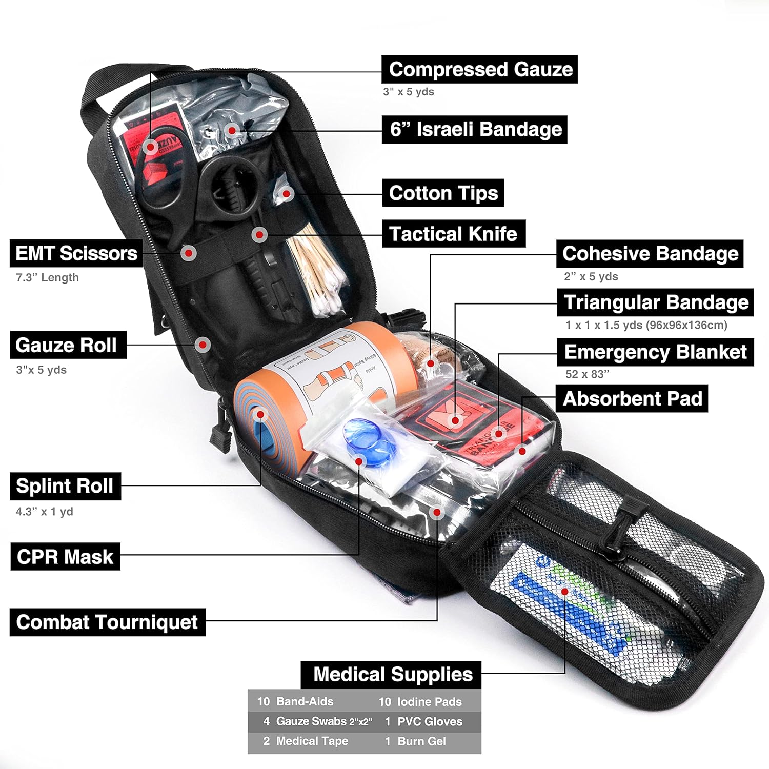 Perfect for Any Emergency Situation ▶ Ideal for Tactical Medics, Military, Police, Firefighter, EMT, Hunter, First Responders, Hikers, Campers, Outdoor Enthusiasts and More! Perfect for Car, Boat, Bike, Motorcycle, Home, Workplace; Travel, Shooting, Hunting, Camping, Hiking, Fishing, Boating, Cycling, Backpacking, Climbing, Mountain Biking, Outdoor Sports, Wilderness Adventures, etc. Also Suit for Natural Disasters Survival Emergency, Such As Earthquakes, Hurricanes, Tornados, Floods and Fires.