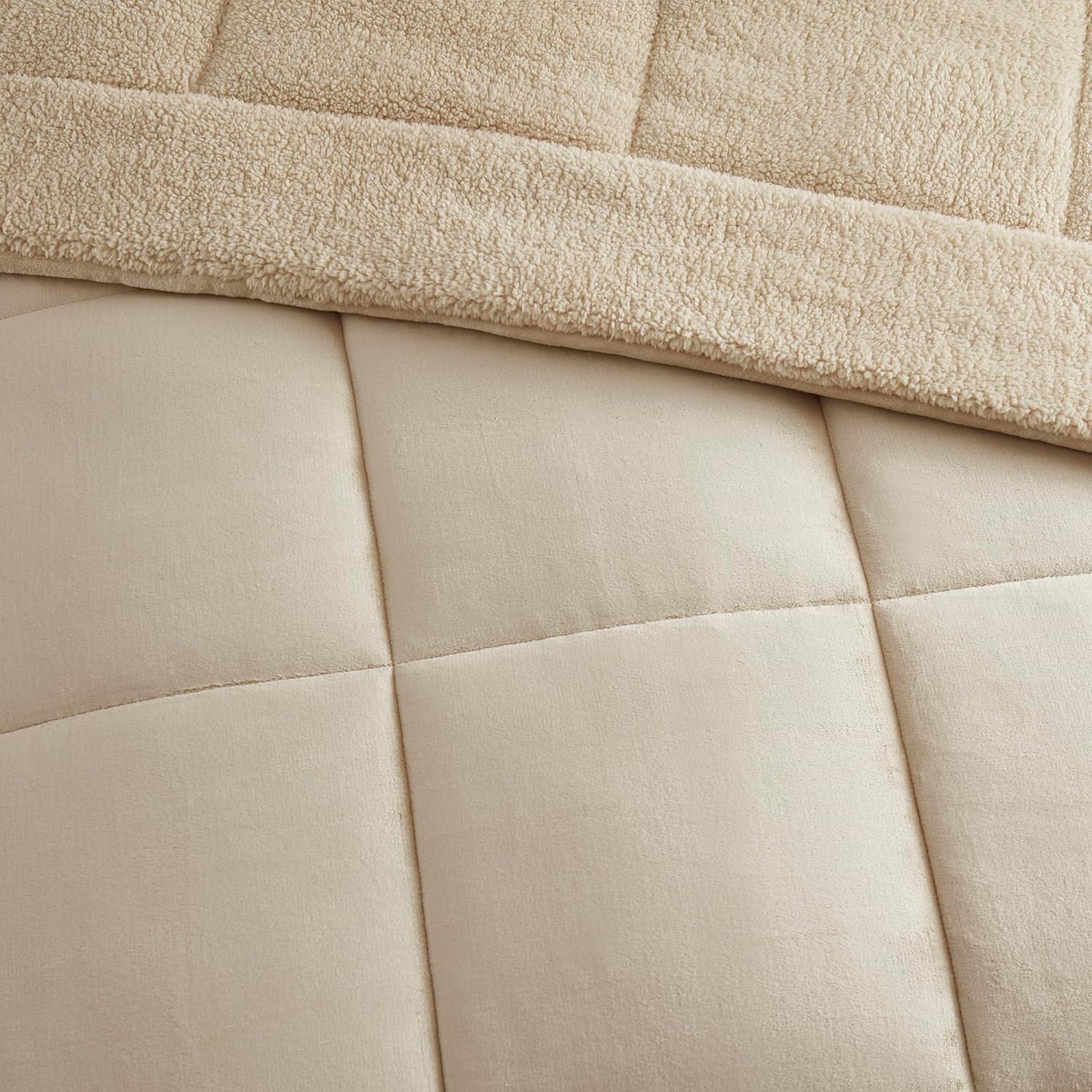 Sweet Home Collection King 3 Piece Sherpa Comforter Set – Plush Bedding Ensemble with Soft Sherpa Texture and Coordinated Shams for Supreme Bedroom Comfort, King, Beige