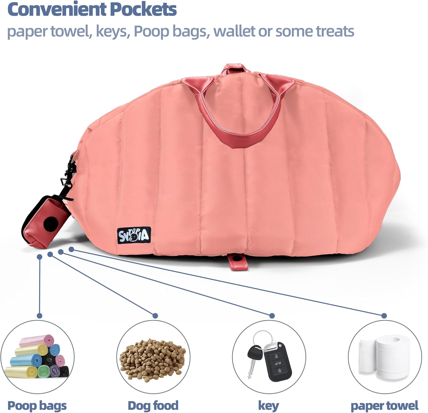 13 reviews for Sytopia Dog Bag Carrier for Small/Medium Dogs, Waterproof and Washable, Travel Dog Purse for Pets up to 25 Lbs, Dog Car Seat & Pet Bed, Dog Collar Clip, Poop Bag Holder, Adjustable Leashes, Pink