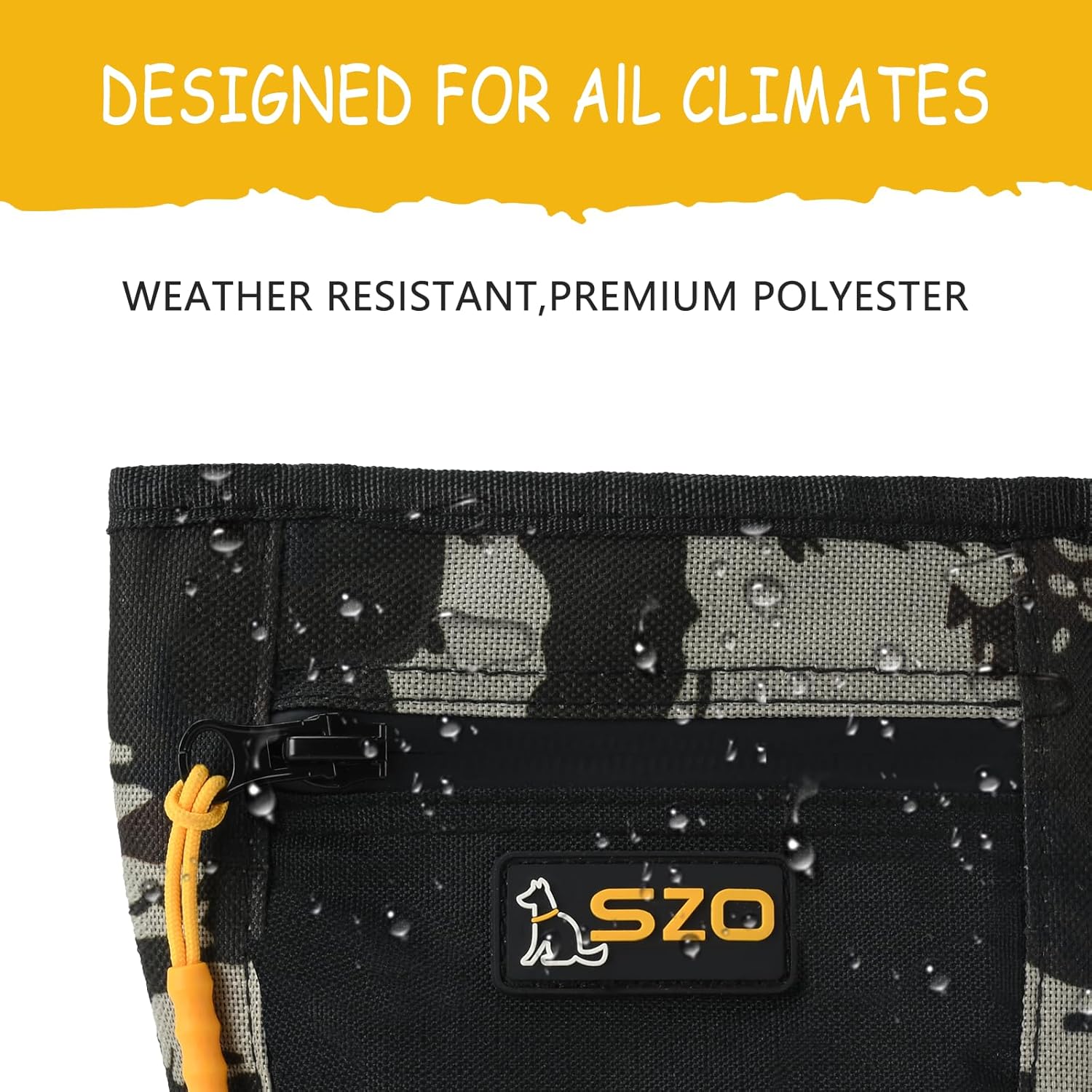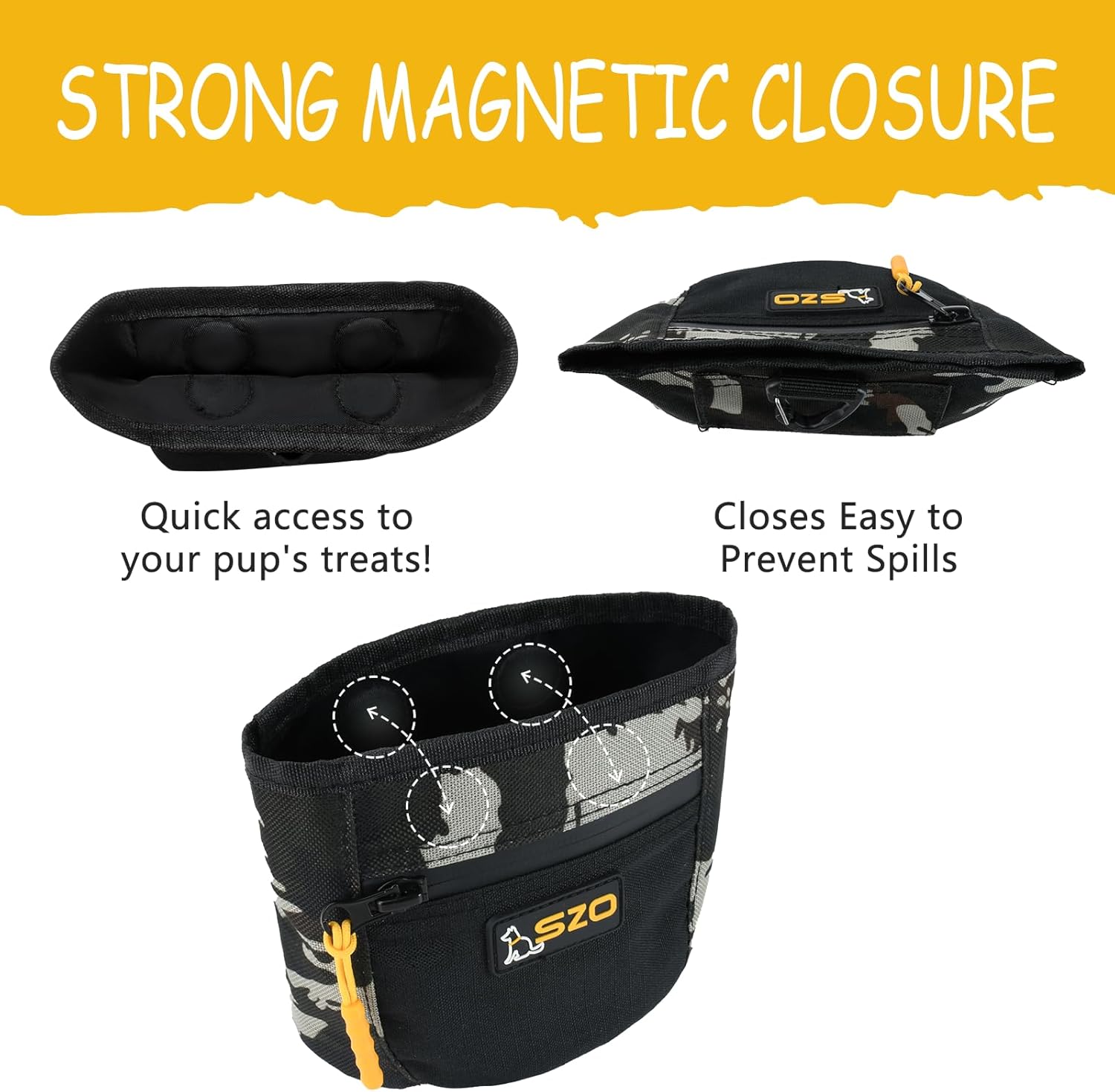 Easy To Use — SZO dog treat pouch is designed to fit your everyday use when training your pets. It features a magnetic closure, allowing quick and one-handed access to your pet’s favorite treats. And a front zipper pocket to secure personal items!