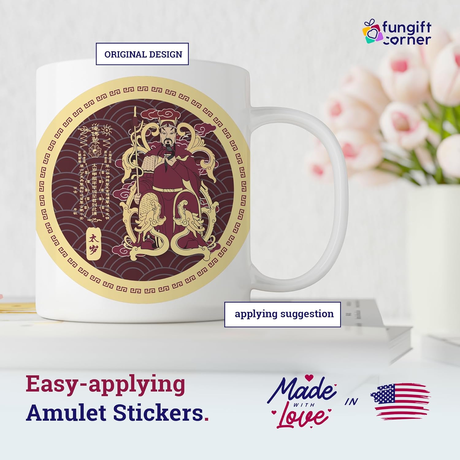 VERSATILE APPLICATION: These 4.3-inch diameter stickers are perfect for applying to any surface, whether it’s a window, mirror, door, laptop, phone, notebook, or any other space that needs the Tai Sui’s protective energy