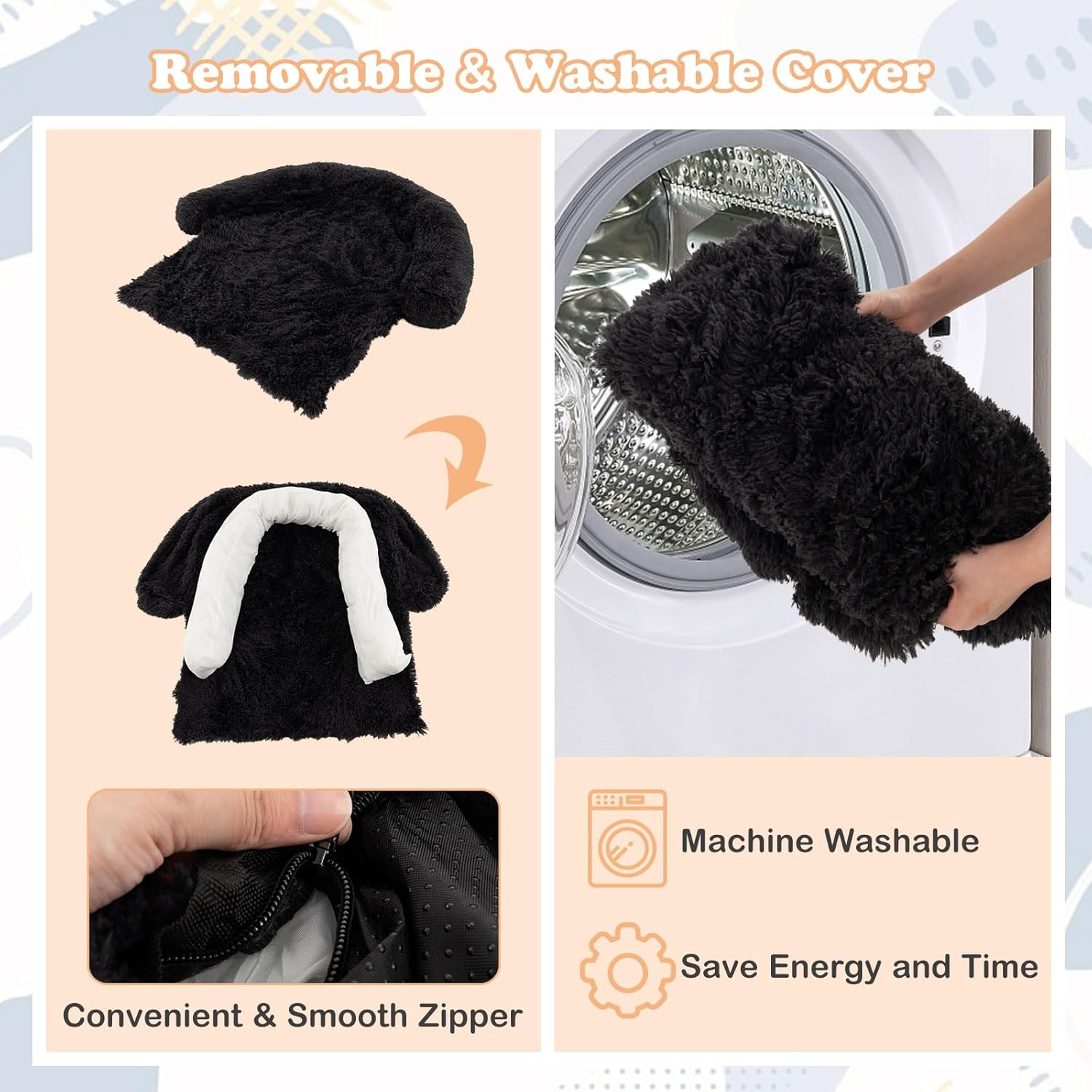 Removable & Washable Cover: Thanks to the convenient & smooth zipper, the outer cover of the dog sofa bed can be easily detached. What’s more, the cover is machine washable, which greatly saves energy and time.
