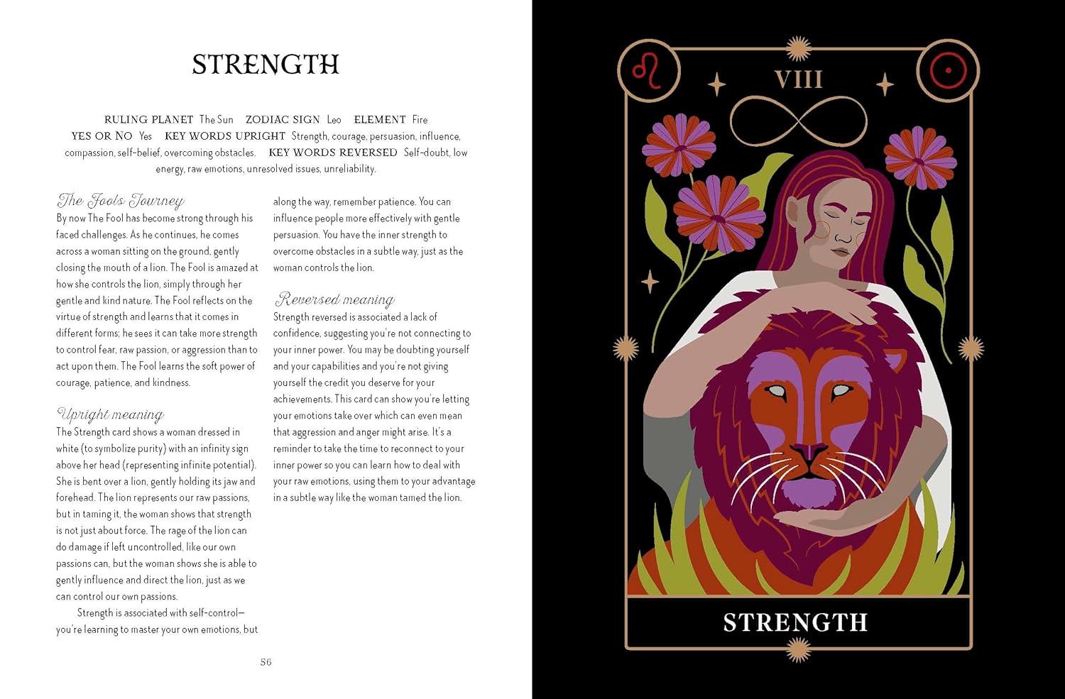 Perfect for beginners or those that learned tarot without the magickal aspect. This is written from a witch’s perspective, and even if you don’t believe, I believe there is value you can take from this book. It explains common tarot spreads, tarot vs oracle, the symbolism on Rider-Waite-Smith style decks, what you should be asking when doing a reading, the importance of journaling, etc. For those that are witch-curious, there are spells included and info on how the cards are related to astrology and numerology, ways to connect with and care for your cards, etc.Very beautiful to look at – which definitely helps you want to keep turning pages. I will have to look to see if this author and illustrator have put out a deck together.Fun fact: the dust jacket doubles as a mat to do a 3 card spread, and it’s gorgeous.Very easy to find exactly what you are looking for. The top of the card specific pages are clearly labeled and have all of the keywords and connections each card has, and the main content of the page focuses on upright and reversed meanings. The info is easy to understand it help make the connection – it’s done better than some of the books included with my decks.Highly recommend for anyone looking to learn tarot.