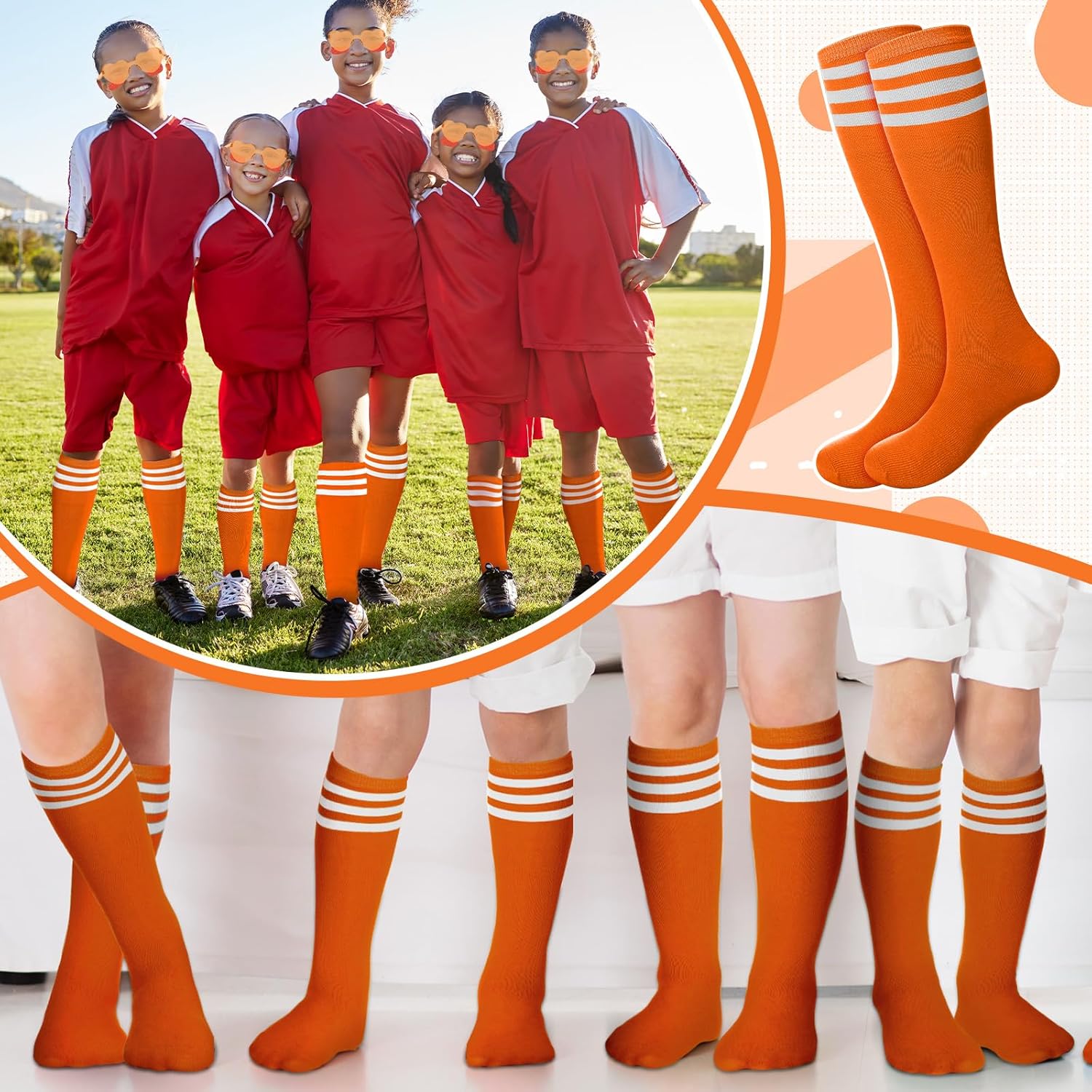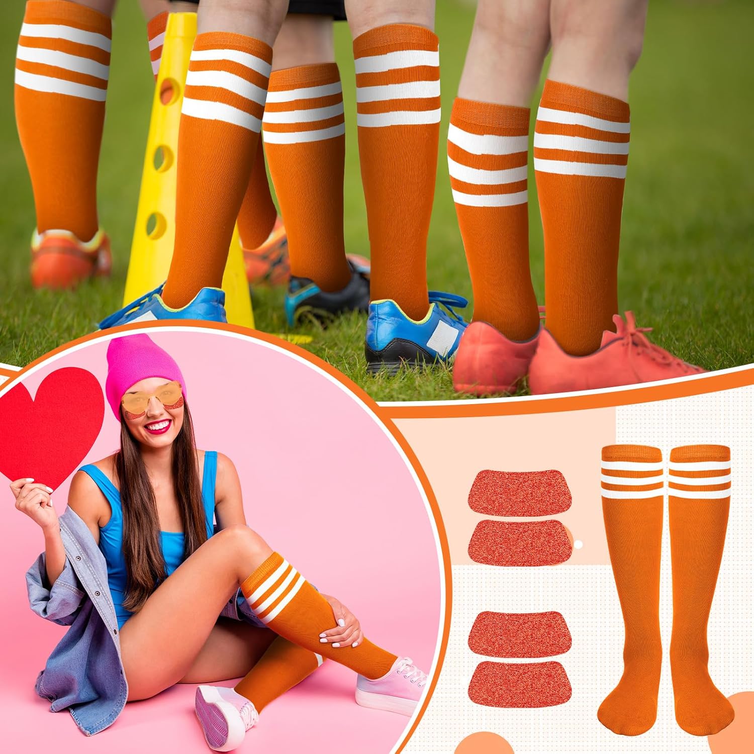 4 reviews for Tarpop 18 Pcs Women Knee High Socks Set 6 Soccer Socks 6 Eye Black Stickers 6 Sunglasses for Sport Spirit Event Wear