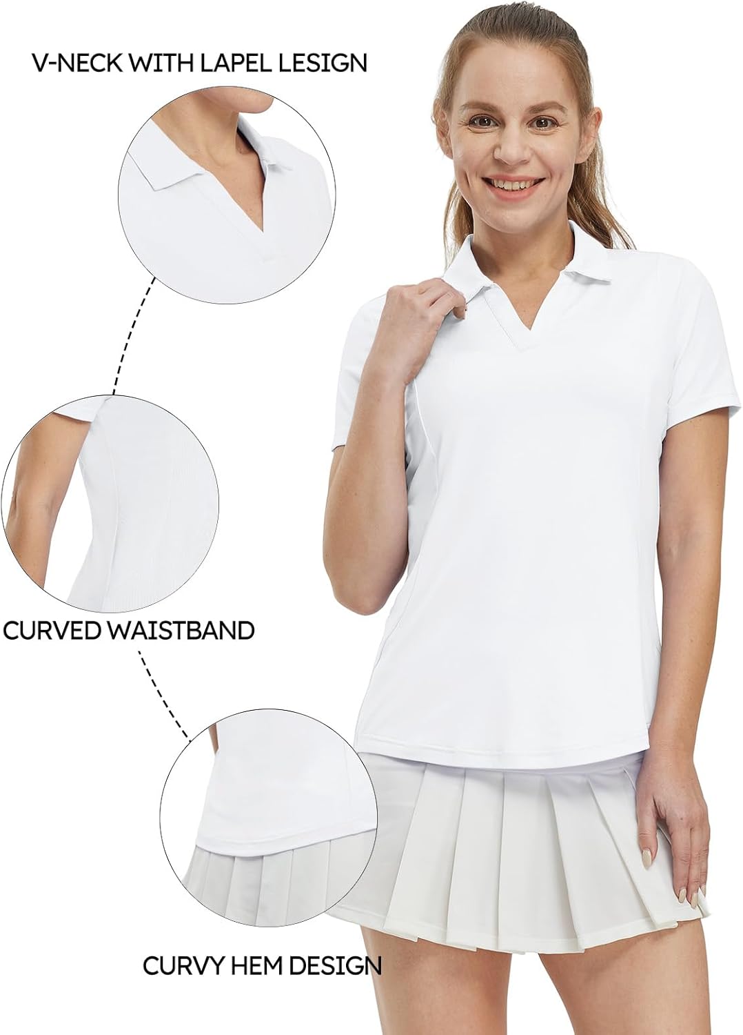 Women’s UPF 50+ Polo Shirt Short Sleeve Golf V-Neck Collared Shirts