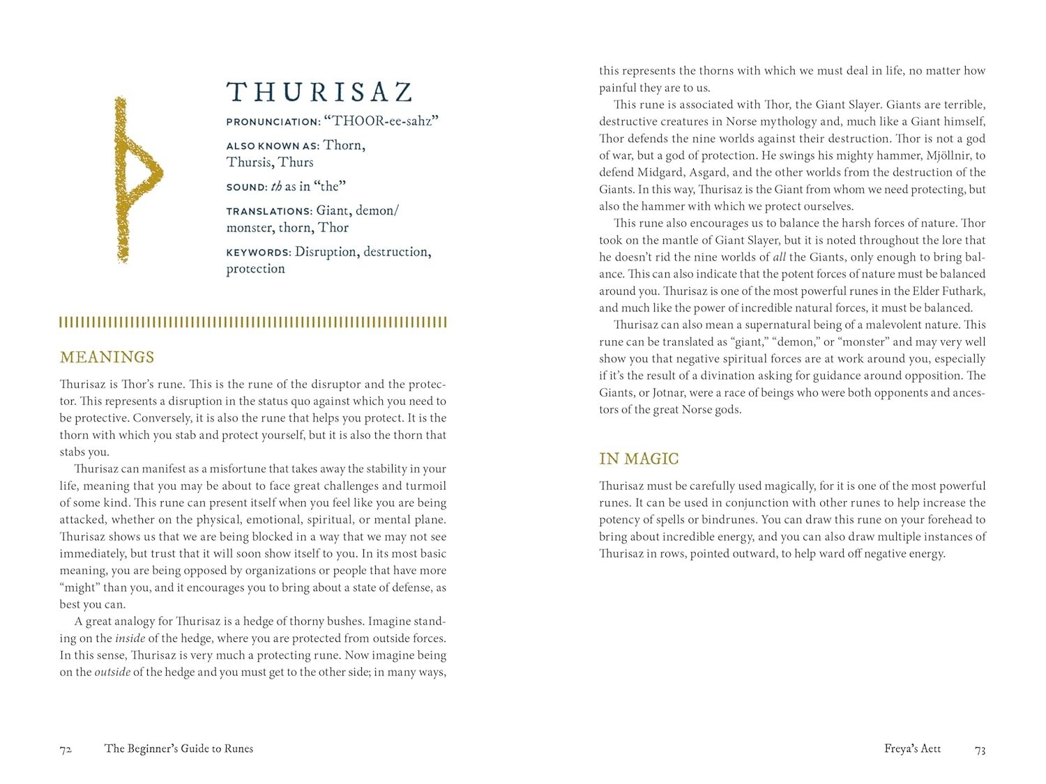 He Made understanding the runes incredibly easy and he also put in extra information from how to pronounce them, their meanings, history and stories/legends they have come from. He also includes how to use them in changing or inscribing magic.Overall I found it very helpful as someone who barely knew anything about the runes besides them being Nordic and a form of divination.