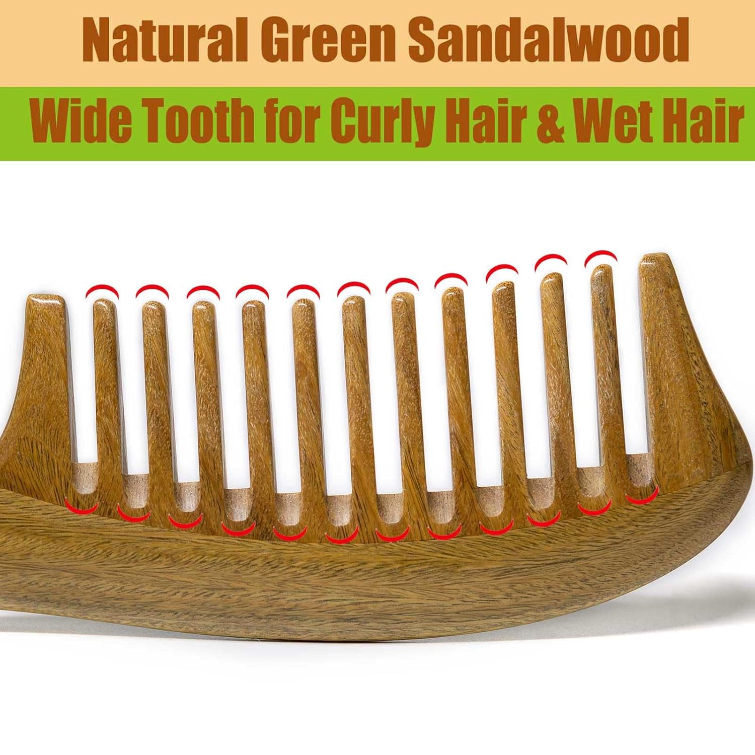 Wide Tooth Wooden Comb for Hair Detangling: With wide tooth spacing, round tips and U-shaped tooth grooves, the detangler comb allows smoothly and gently comb through hair without tangling