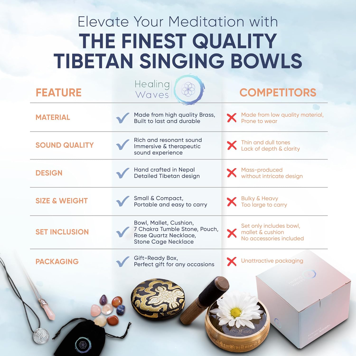 The quality of the Singing Bowl. I think that bowl is machine made not hand made, I am really disappointed. I am not happy about the Singing Bowl.