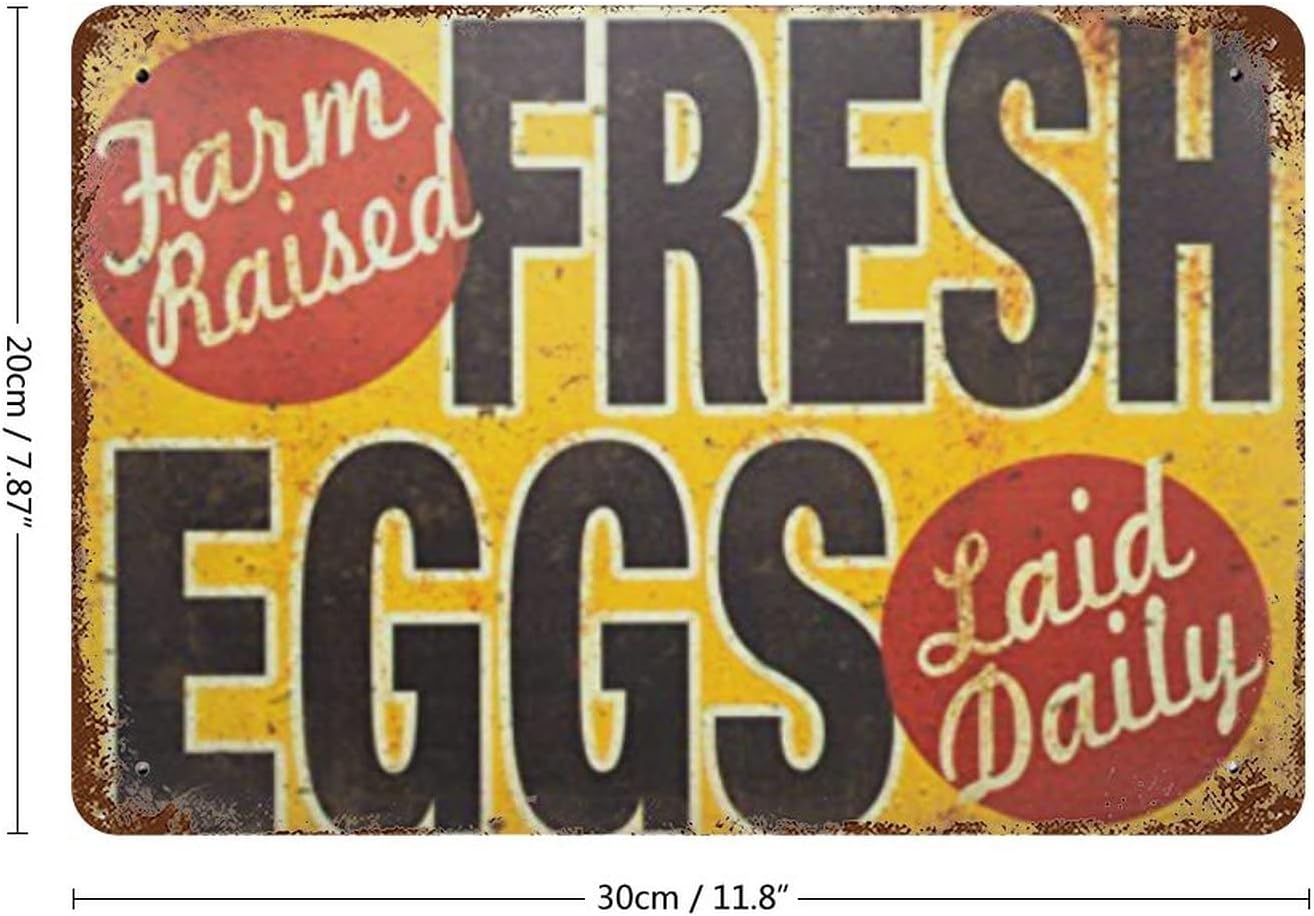 Tin Signs Fresh Eggs Metal Posters Rooster Chicken Decoration Farm Barn Coop Dairy Kitchen Farmhouse Signs Store Signs Supermarket Market Signs 12×8 inhces