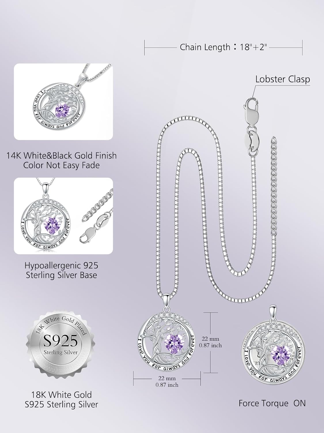 The TOUPOP brand sterling silver pendant features a stunning heart-cut amethyst stone encircled by a tree of life design.The necklace is crafted with high-quality materials and offers excellent value for the price. The amethyst’s beautiful color and the intricate design make this pendant a truly special piece of jewelry.Overall, I recommend this product to all jewelry lovers and collectors out there.