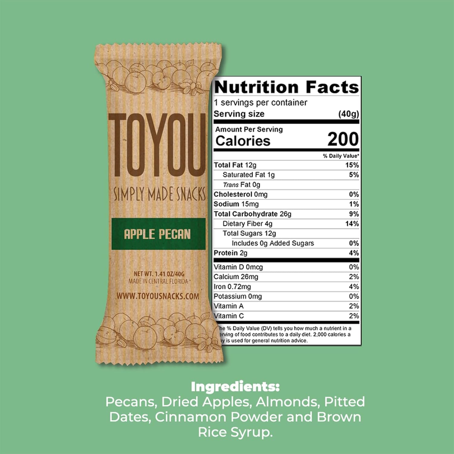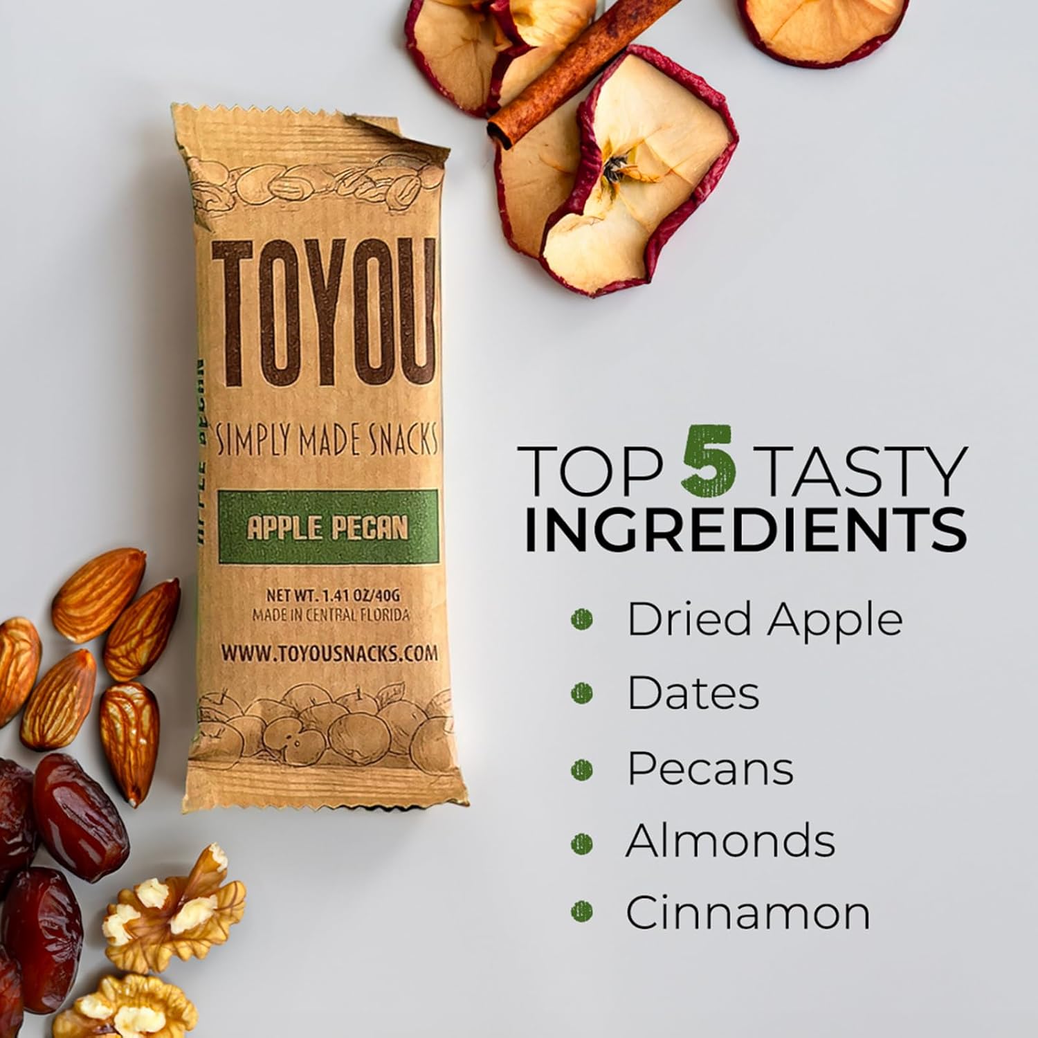 ToYou Granola Bars Dried Fruit and Nuts Bars – 14 Count, Gluten Free, Vegan Healthy Snacks for Adults and Kids, Breakfast, Home or Office Treats with Protein – Apple Pecan, Snack Bars