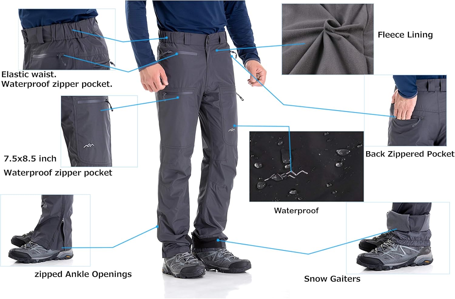 TRAILSIDE SUPPLY CO. Mens-Ski-Snow-Snowboard-Pants, Wind/Waterproof, Insulated
