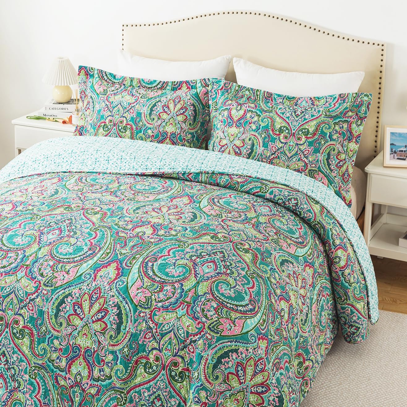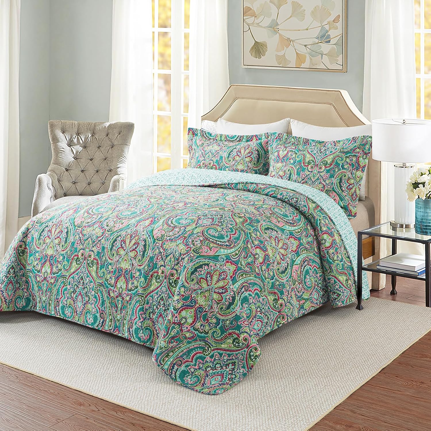 13 reviews for Travan 3-Piece Bedspread Quilt Set Oversized Reversible Quilted Bedding Cotton Coverlet Set with Shams, Gorgeous Green-Pink Floral Pattern, Queen Size