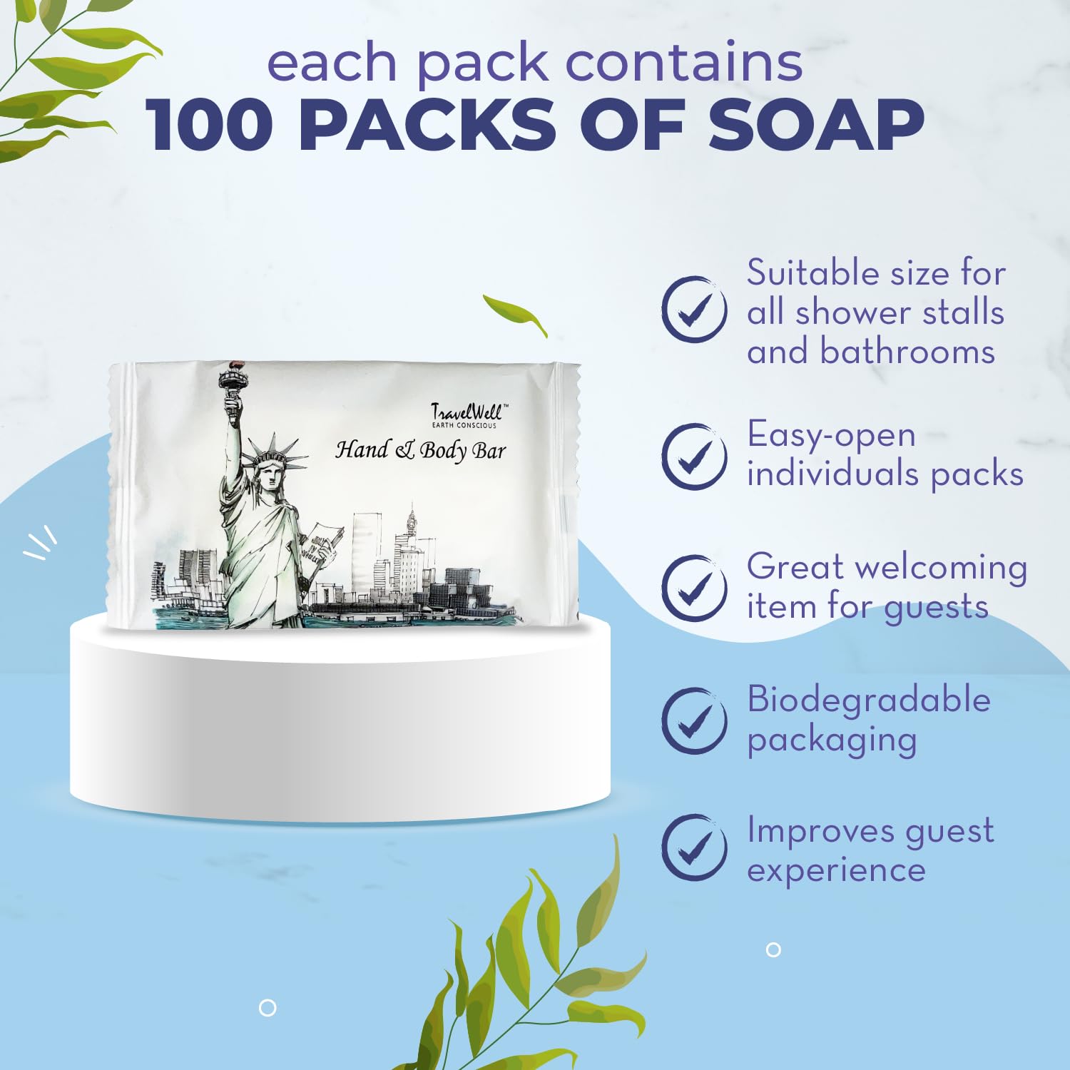 Travelwell Bar Soap Bulk – 100 Pack, 1.0 oz Rectangular Travel Size Soap Bars – Individually Wrapped Hotel Soap – Great for Vacation Rental and Airbnb Toiletries or Hygiene Kits Supplies