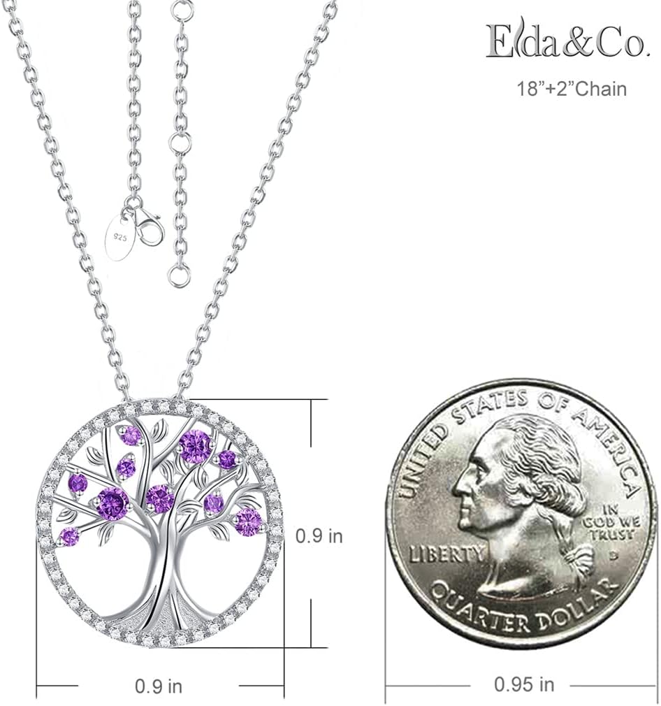 13 reviews for Tree of Life Necklace for Her Valentines Day Birthday Gifts Wife February March Birthstones Amethyst Aquamarine Jewelry for Women 925 Sterling Silver