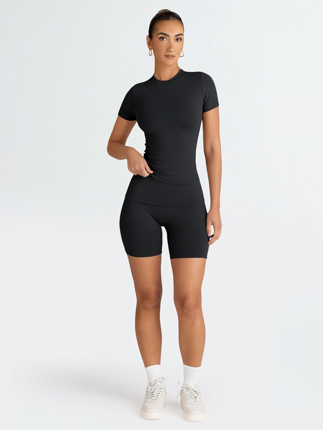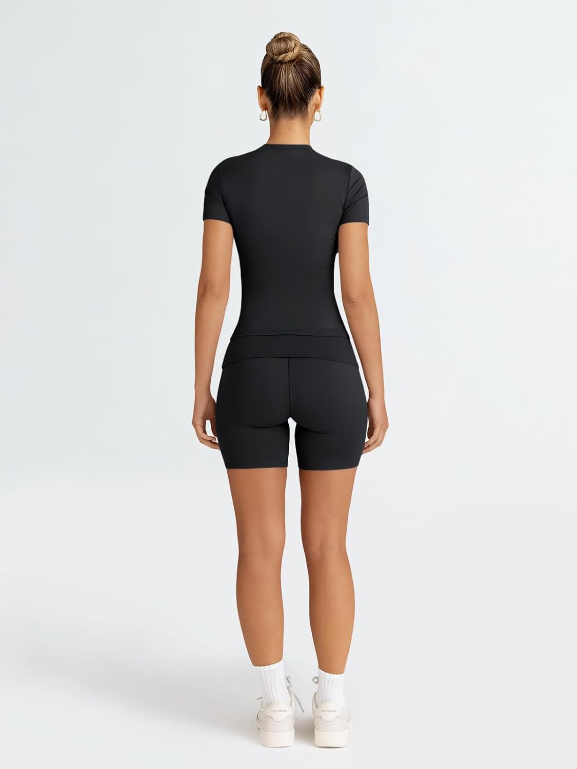 Perfect set for any type of workout. Makes you look nice and put together like you tried. I do weight, cardio, zumba, and yoga. Not tight like other sets this one comfy. Soft buttery feel. Perfect length on everything. The fold on the pants help shape you better. The sleeves are perfect not to short they cover the little fat in my arms. Love it! Plan to order it in every color!