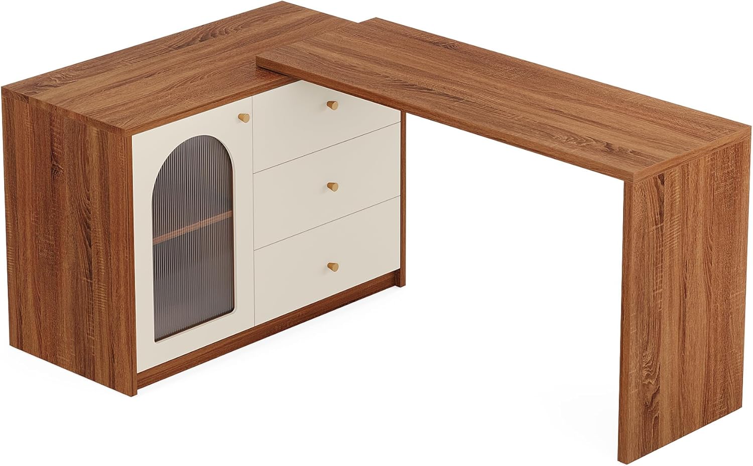 【Charming Modern Design】The striking wood grain accents of the office desk bring a touch of homeliness, while its crisp white drawer finish adds a refreshing rustic burst. This L desk can not only blend perfectly with both modern and traditional settings, but also bring charming character to your workspace, turning it into a place of inspiration and productivity.