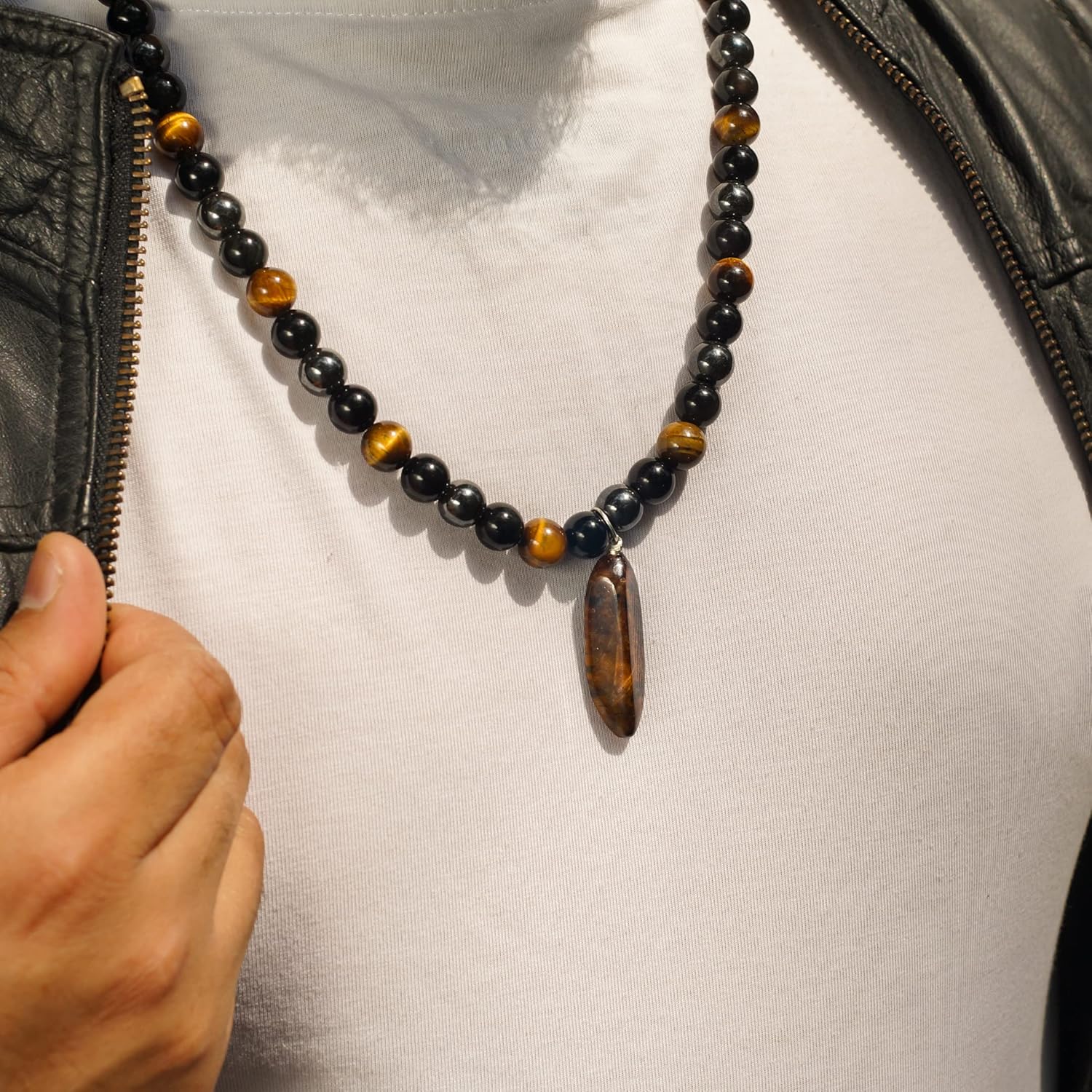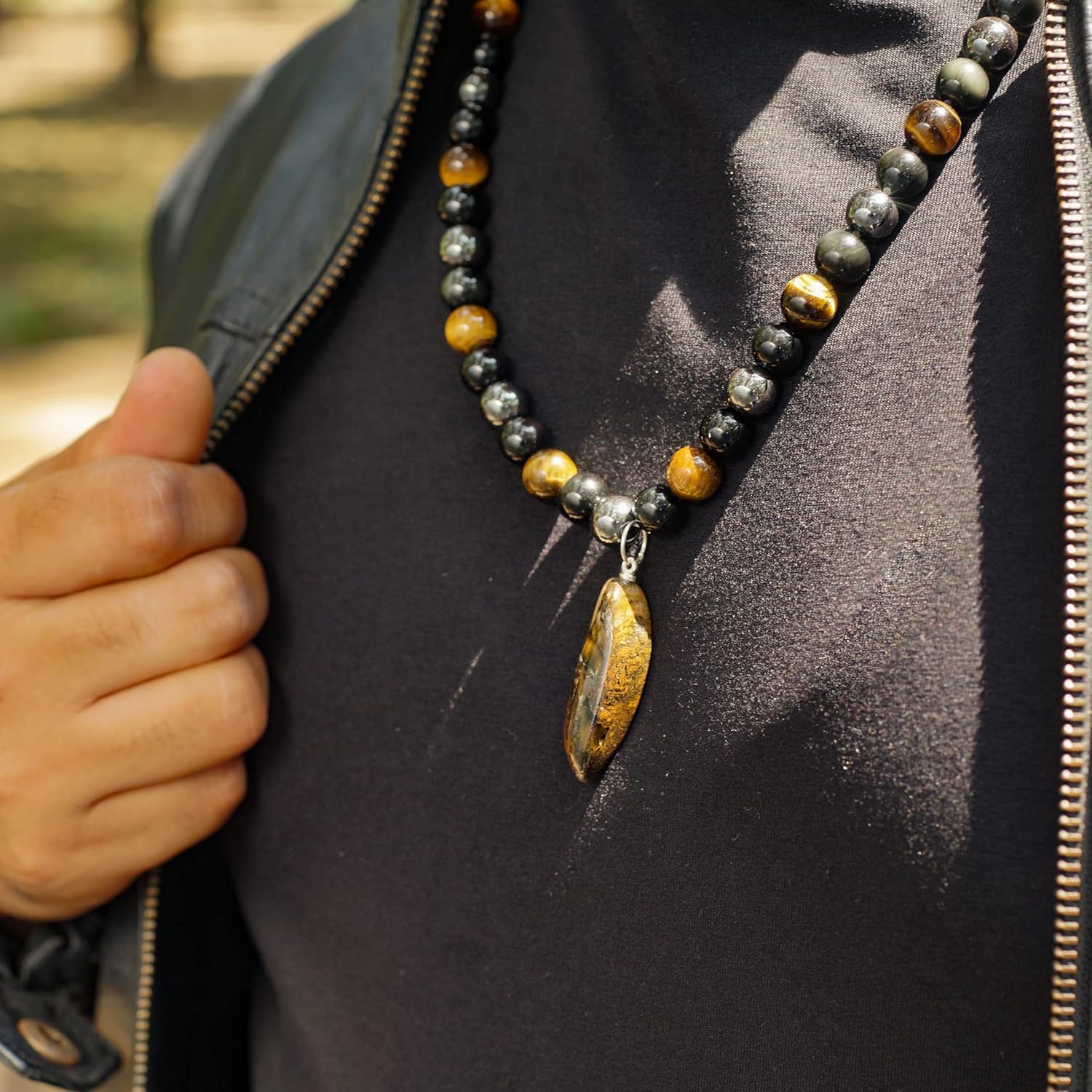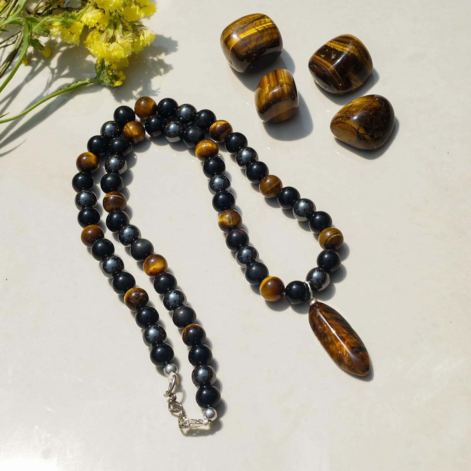 8 reviews for Triple Protection Beaded Necklace of Hematite, Tiger’s Eye & Obsidian with Tiger Stone Pendant