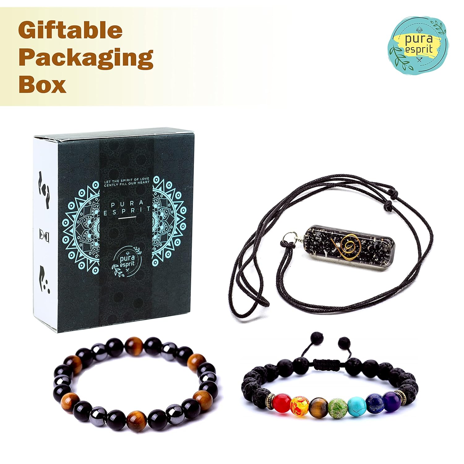 “Pura esprit” means “purely live a life”, that encourages people of being honest, keeping your word, truthful, fair, kind, loving, respecting Nature and everyone. PURA ESPRIT always ensures commitment with their consumer community about products quality. Inspired by our customer’s essentiality, all of our products made with natural crystals material infused in standard mold. We produce high quality Orgone Pyramids, Pendants, Bracelets.