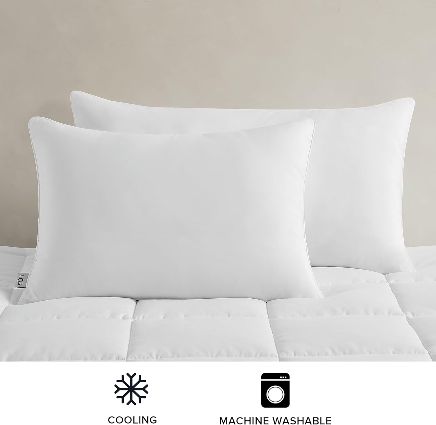 UGG 32239 Aimee King Size Cooling Hypoallergenic Down Alternative Bed Pillows with Washable Removable Cover Hotel Collection Bedding Pillows for Back Stomach or Side Sleepers ,King , White, 20X36 inch