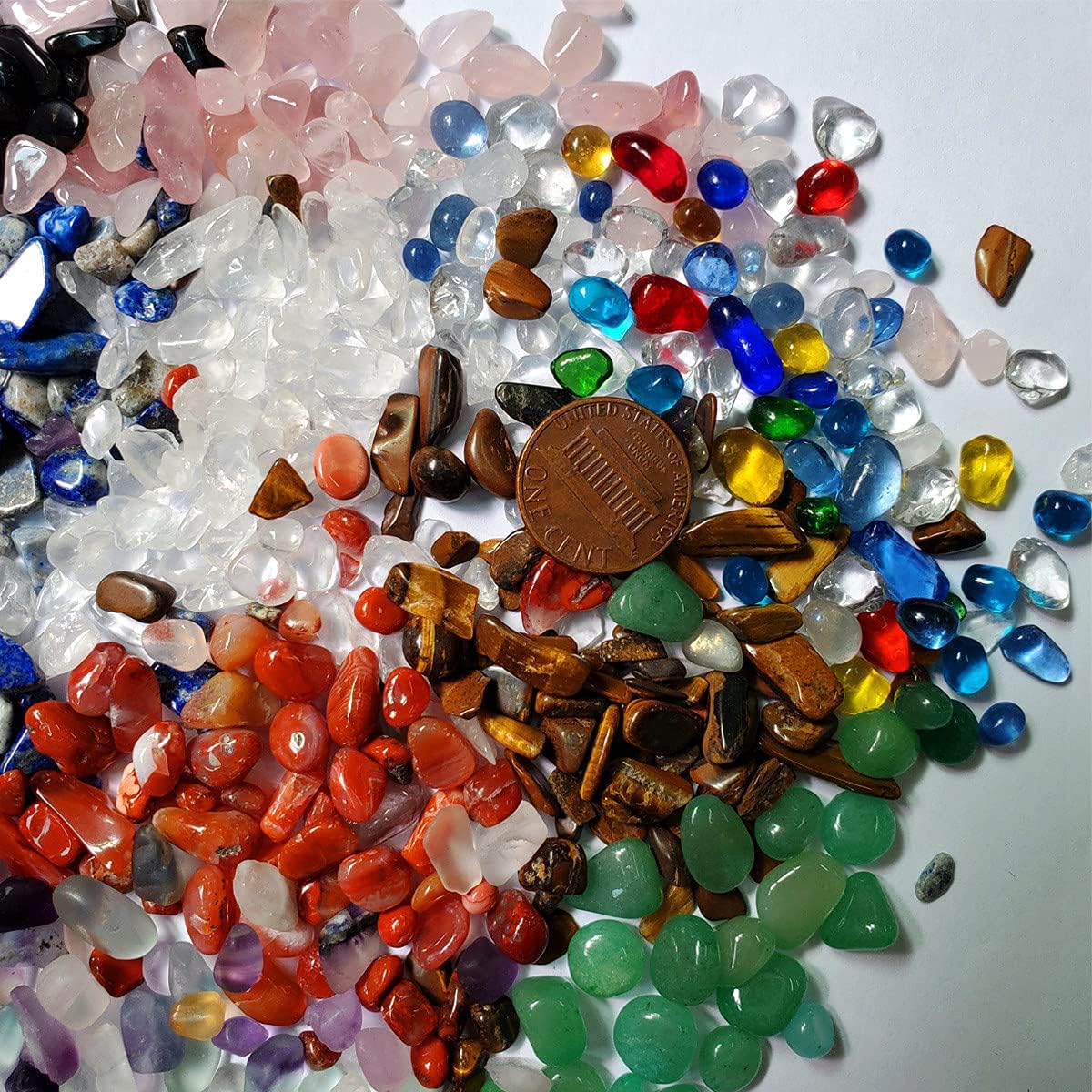 Undrilled Assorted Mini Crystal Stone Tumbled Chips Stone Home Indoor Decorative Gravel,Fluorite,Tiger’s Eye, Rose Quartz,Amethyst(1/2 Pound)