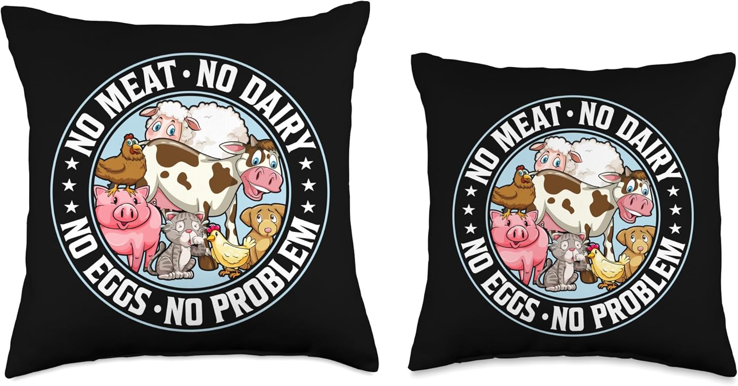 Vegetarian Plant Based Veggie Gifts & Clothing No Meat No Dairy No Eggs No Problem-Vegan Vegetarian Throw Pillow, 16×16, Multicolor