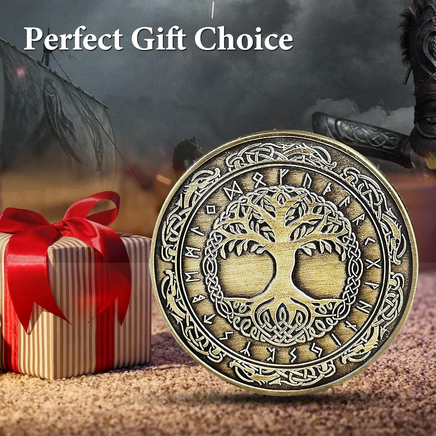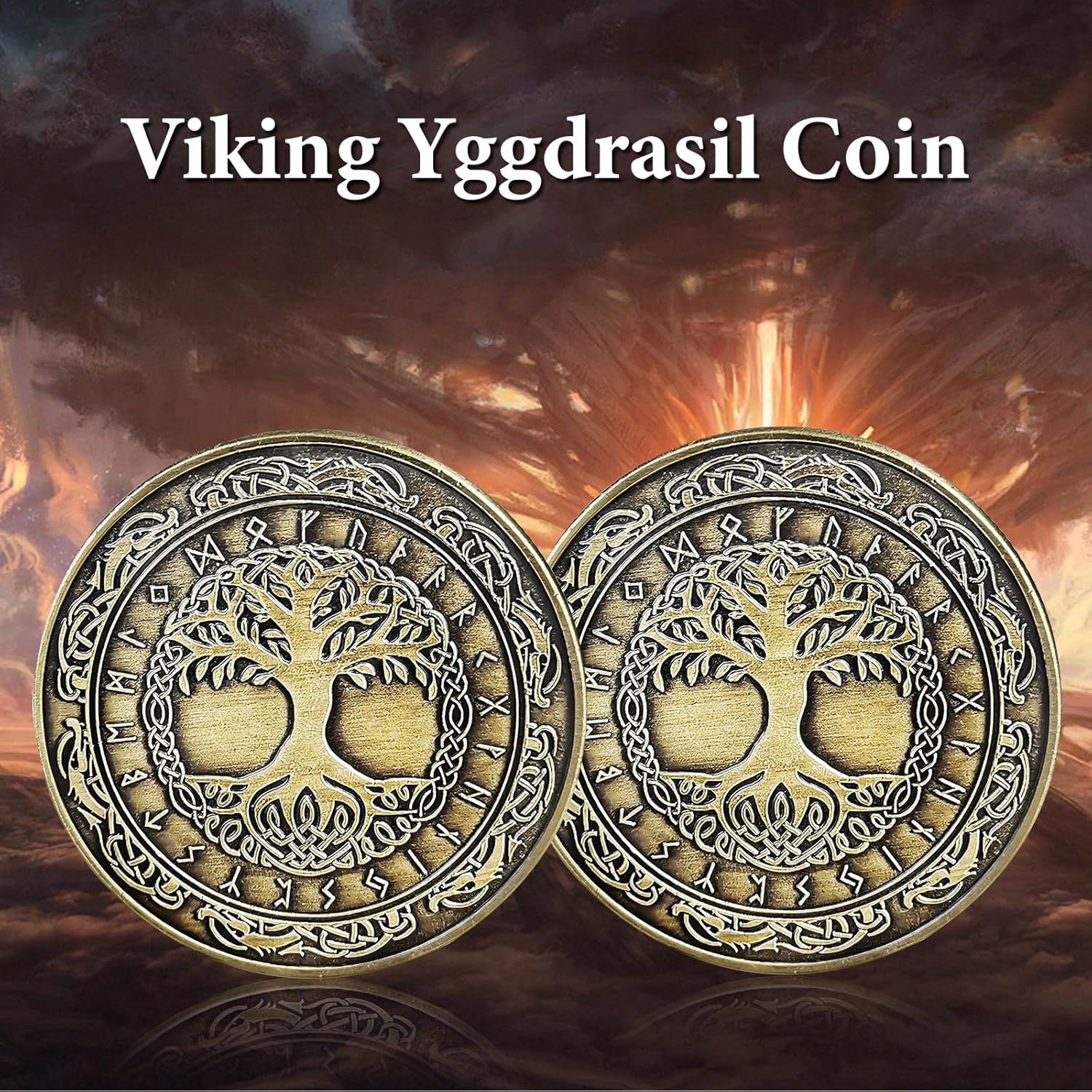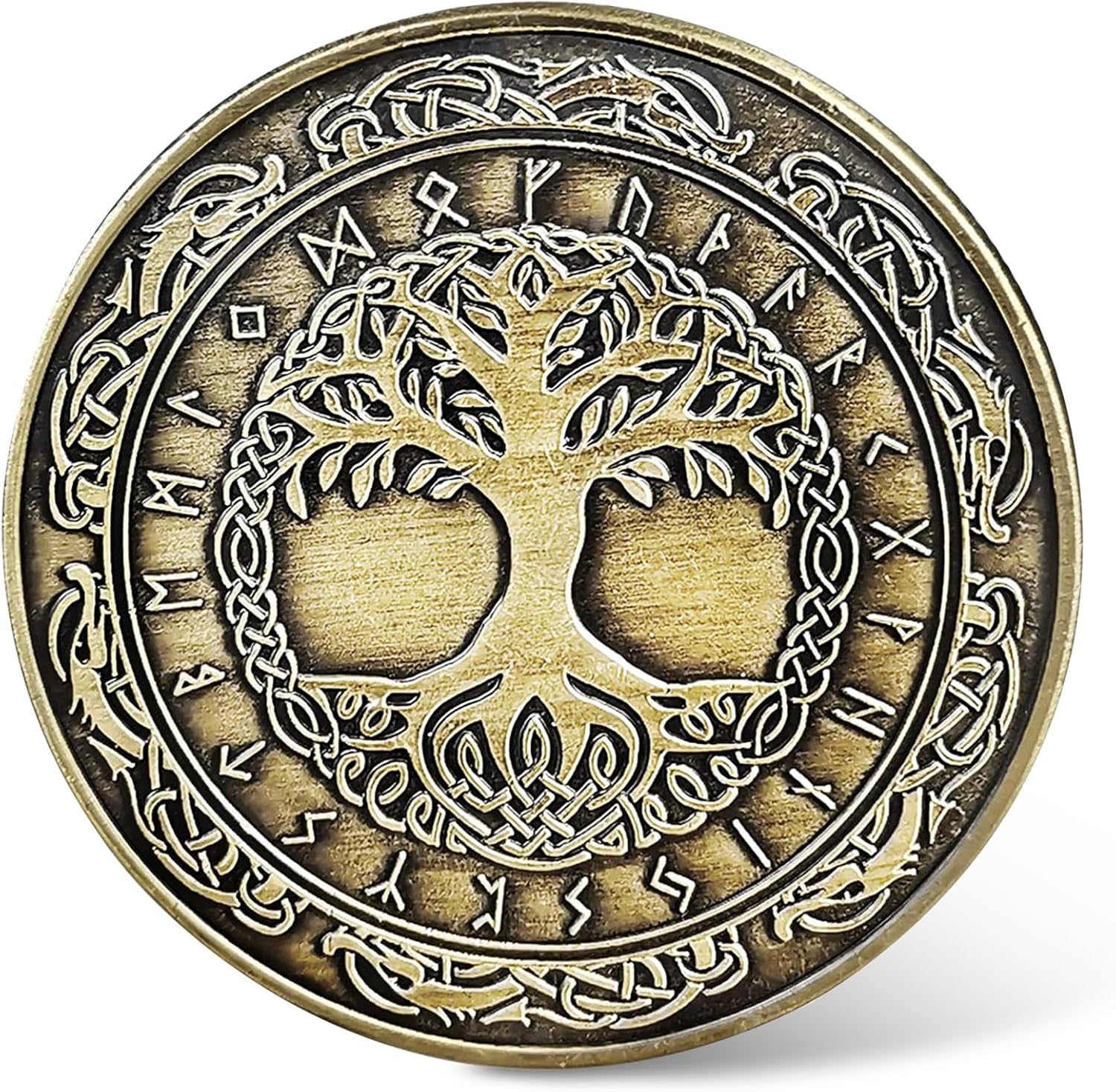 Viking Yggdrasil Coin – Viking Runes Tree of Life Coin – Norse Mythology Protective Talisman Amulet – Viking Gifts for Men Women