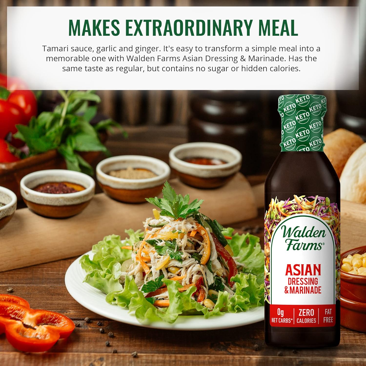 Walden Farms Asian Zero Calorie Dressing & Marinade 12 oz Bottle – Fresh and Delicious, 0g Net Carbs Condiment, Kosher Certified – So Tasty on Salads, Sandwiches, Chicken, Asian Tapas and More