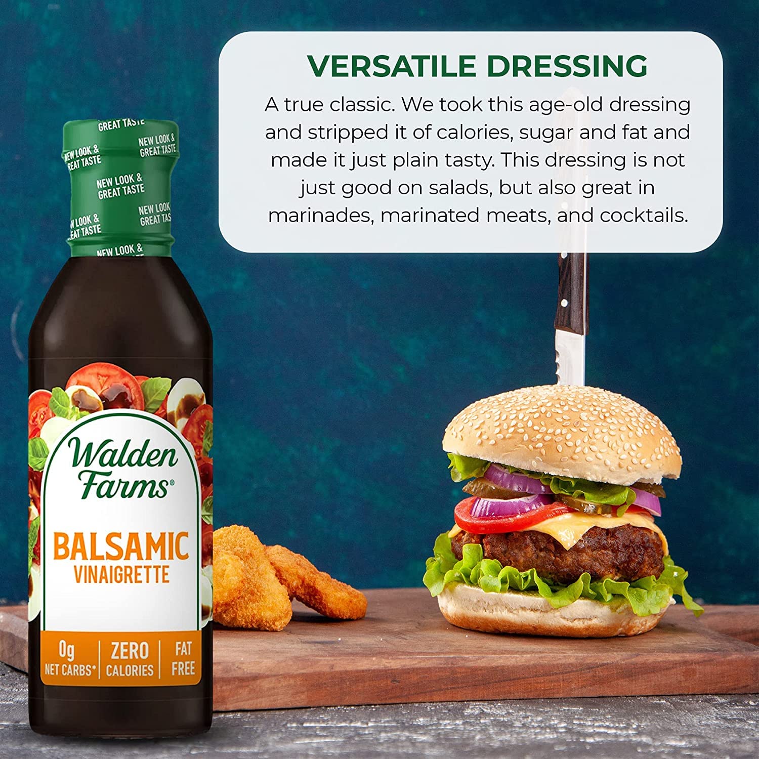 Walden Farms Balsamic Vinaigrette Dressing 12 oz Bottle – Fresh and Delicious, 0g Net Carbs Condiment, Kosher Certified – So Tasty on Salads, Pizza, Vegetables, Marinades, Cocktails and More