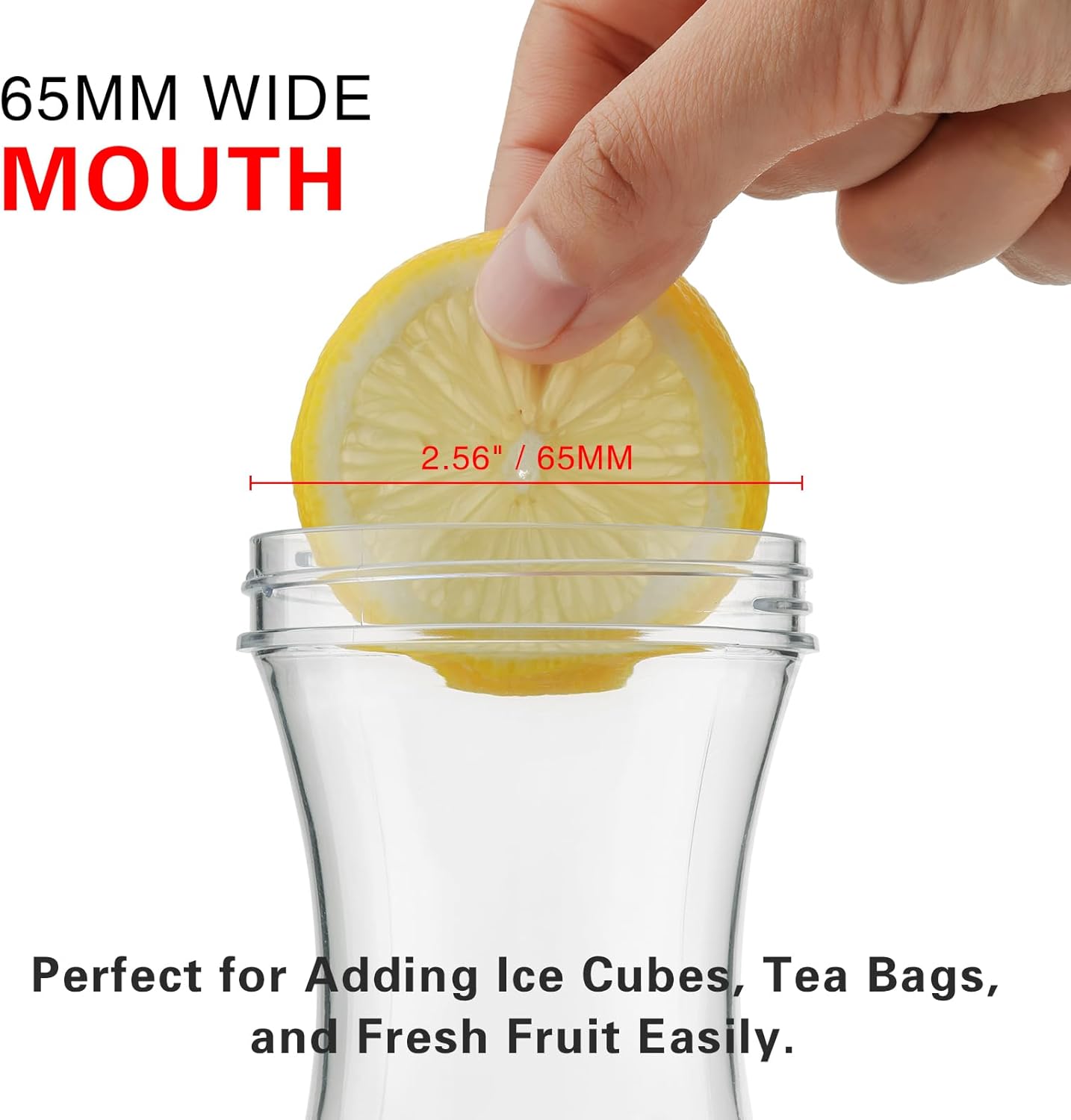 【65mm Wide Mouth】: The juice pitcher features a wide mouth opening, making it easy to add lemon slices, ice cubes, and other ingredients for a customized drink experience