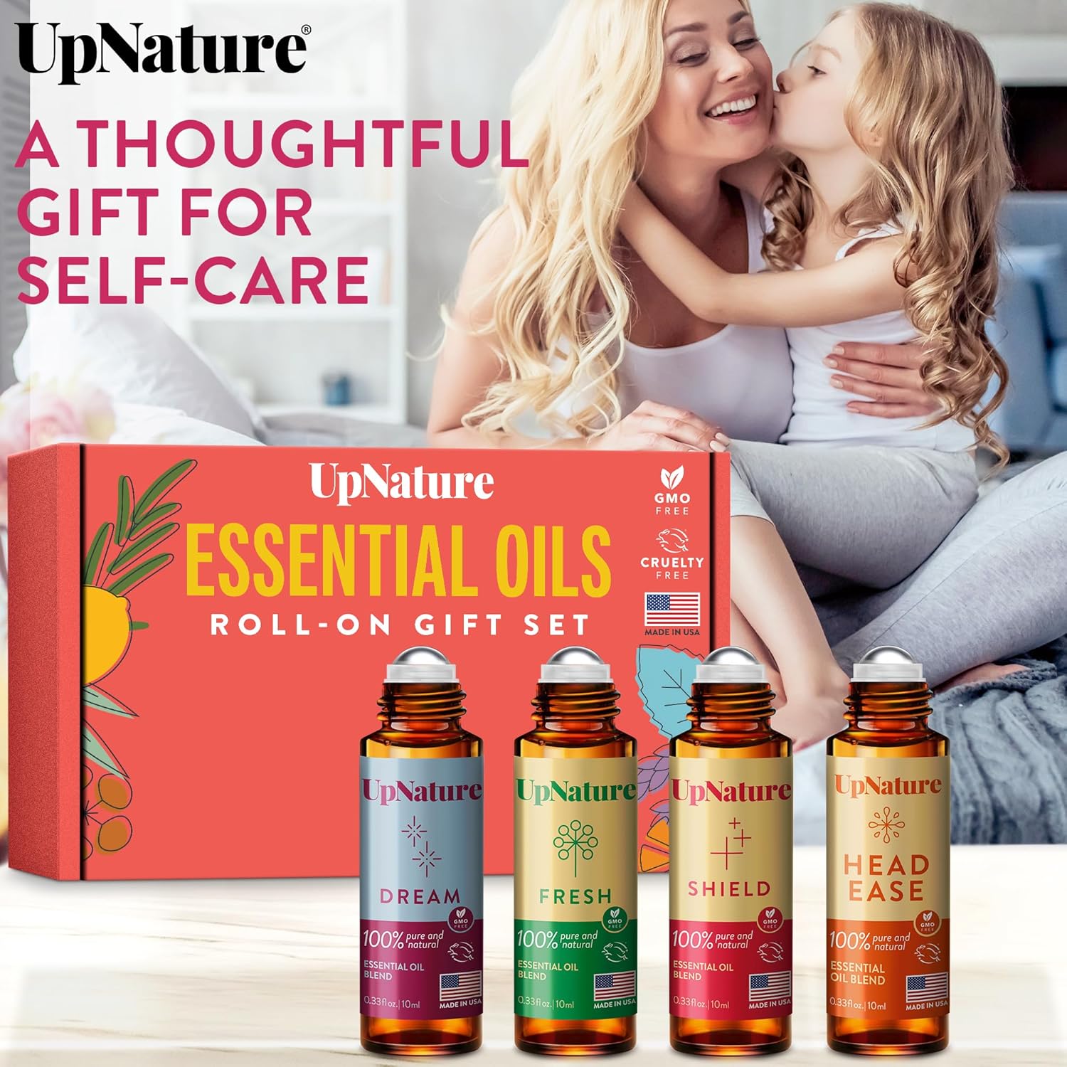 PREMIUM QUALITY ROLL ON ESSENTIAL OILS SET: Essential oil blends include 100% gentle and pure essential oils: Sleep, Shield, Fresh, and Head Ease. Steam-extracted right from the source and packaged in the USA without any additives, toxins, or harmful chemicals. Blended with Carrier Oils. GMO Free, Cruelty Free, and never tested on animals.