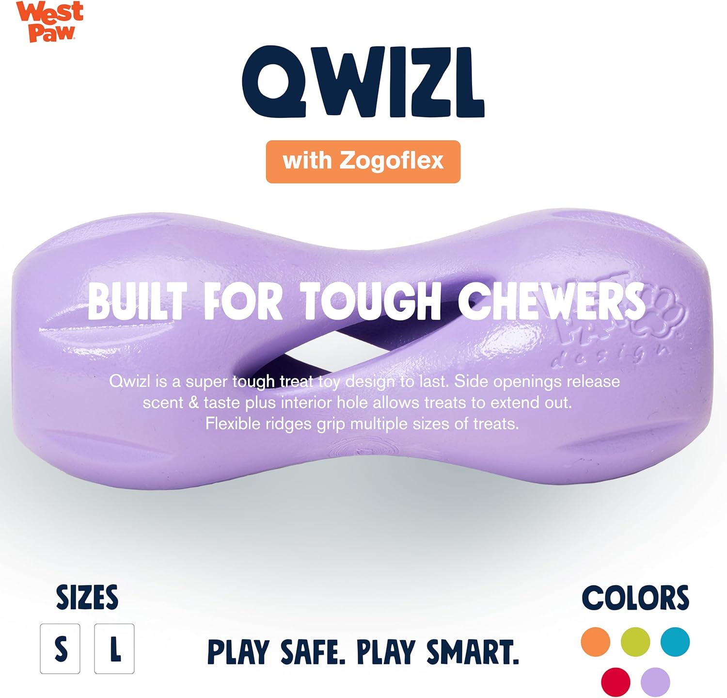 WEST PAW Zogoflex Qwizl Dog Puzzle Treat Toy – Interactive Chew Toy for Dogs – Dispenses Pet Treats – Brightly-Colored Dog Enrichment Toy for Aggressive Chewers, Fetch, Catch, Large 6.5″, Lavender