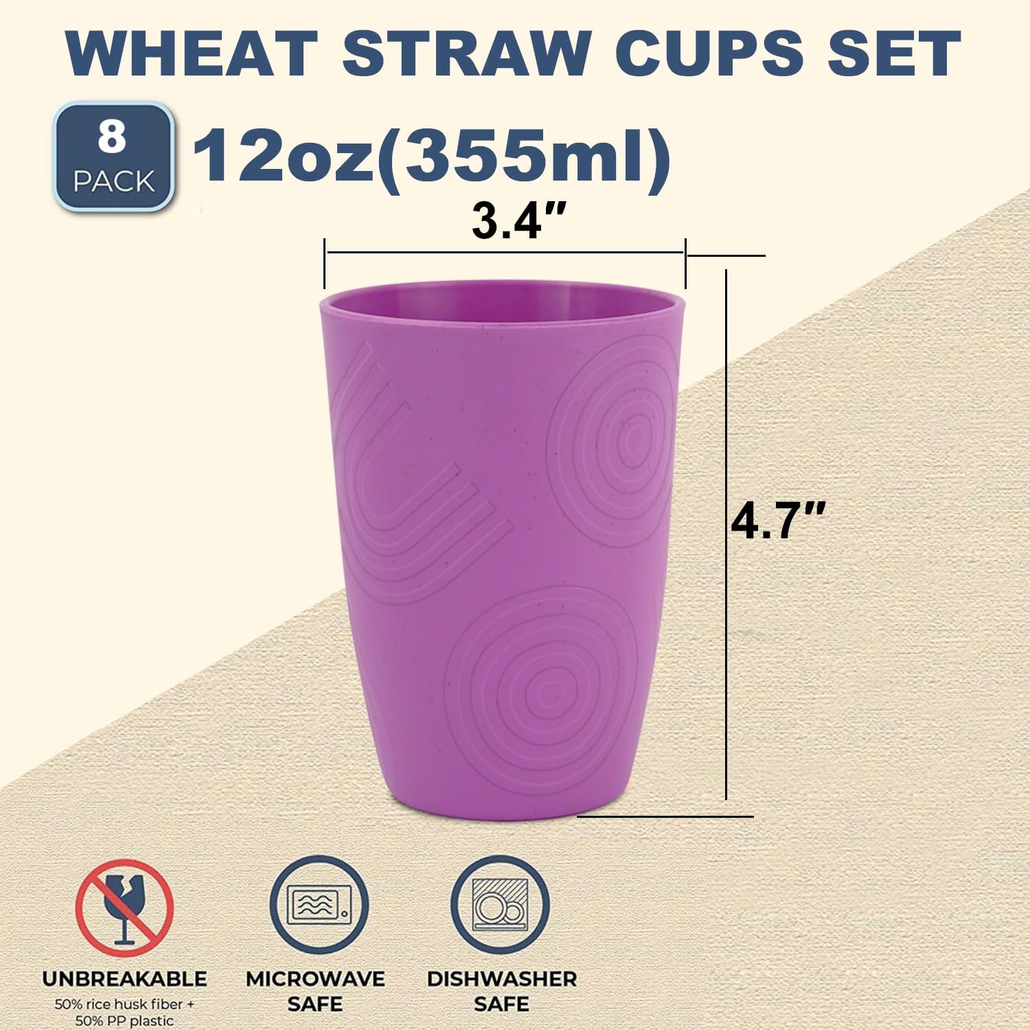 【Dedicated Design】Each wheat straw cup is dedicated designed with a textured appearance, which is both aesthetically pleasing and anti-slipping.