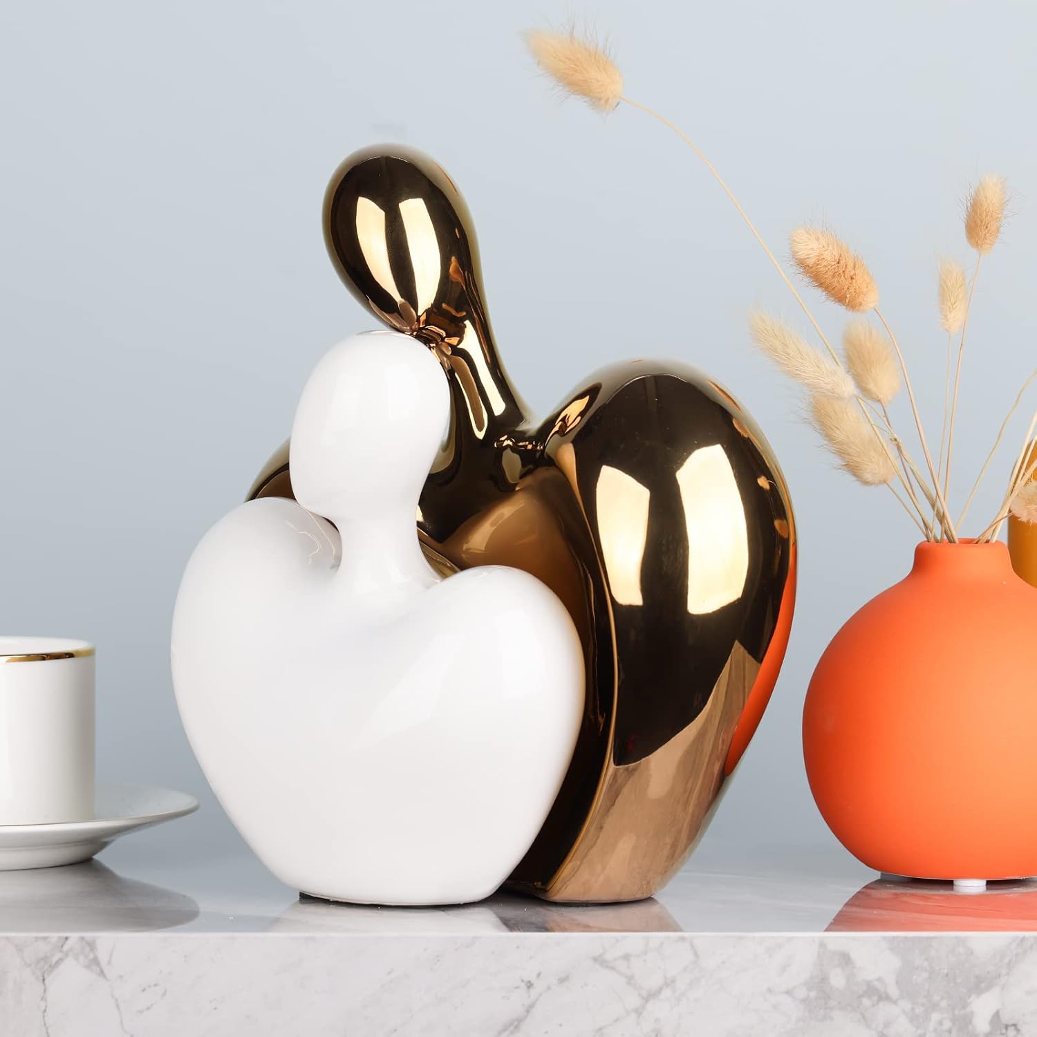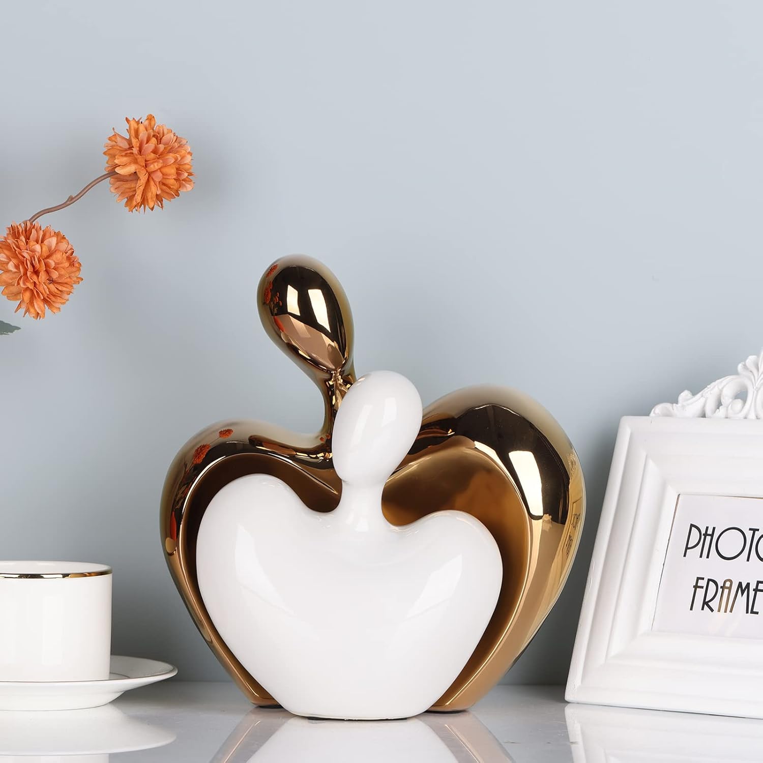 Decorating space: romantic couple statue modern ceramic art sculpture, this unique sculpture can be placed anywhere, such as your living room ledge, living room shelf, home office, reading corner, desk, modern shelf, home coffee table, entrance countertop, bedroom dresser, kitchen, bedroom, bookshelf, people will surely love this sculpture because it enhances the environment for their living or working space artistic ambiance. This unique sculpture is a great addition to any home decor.