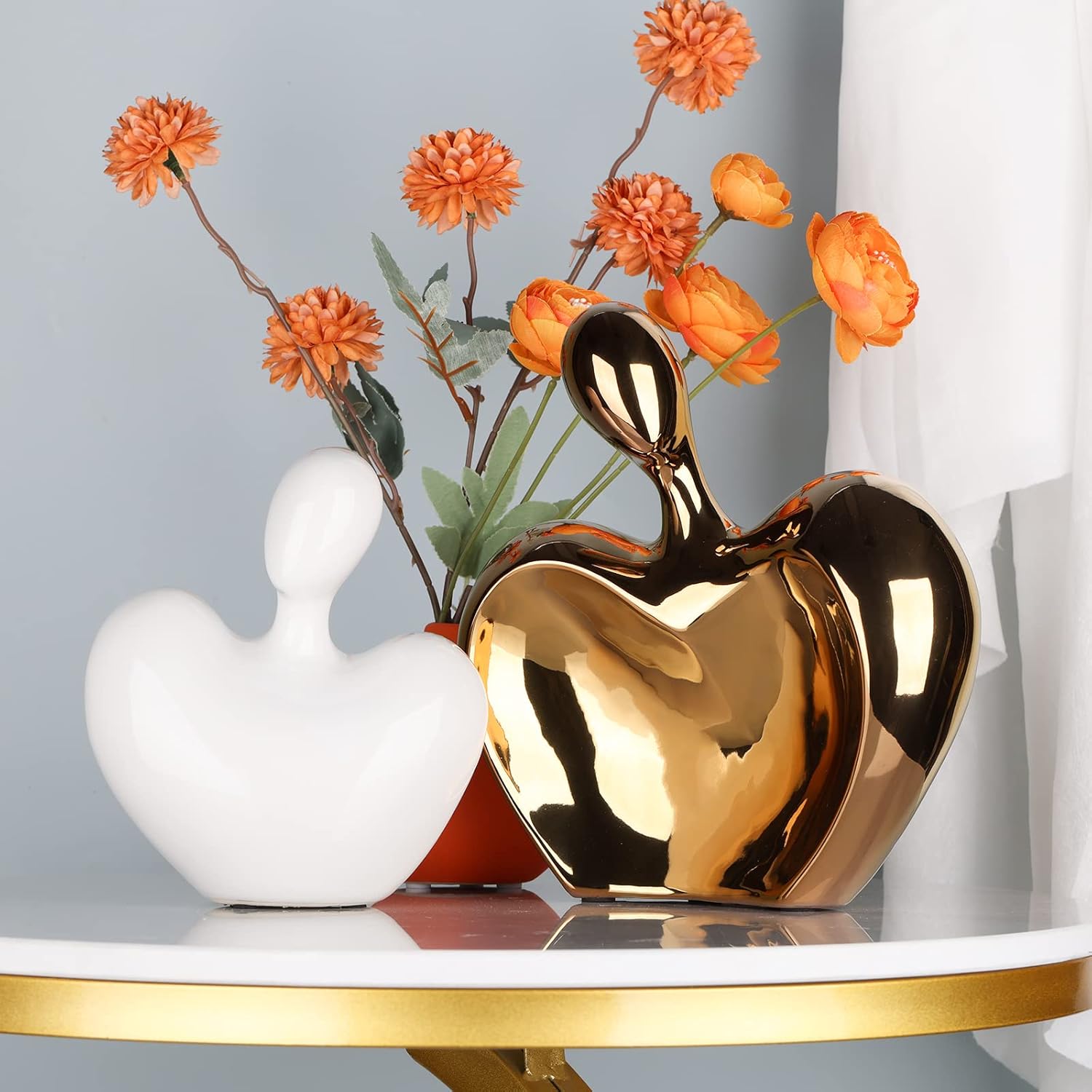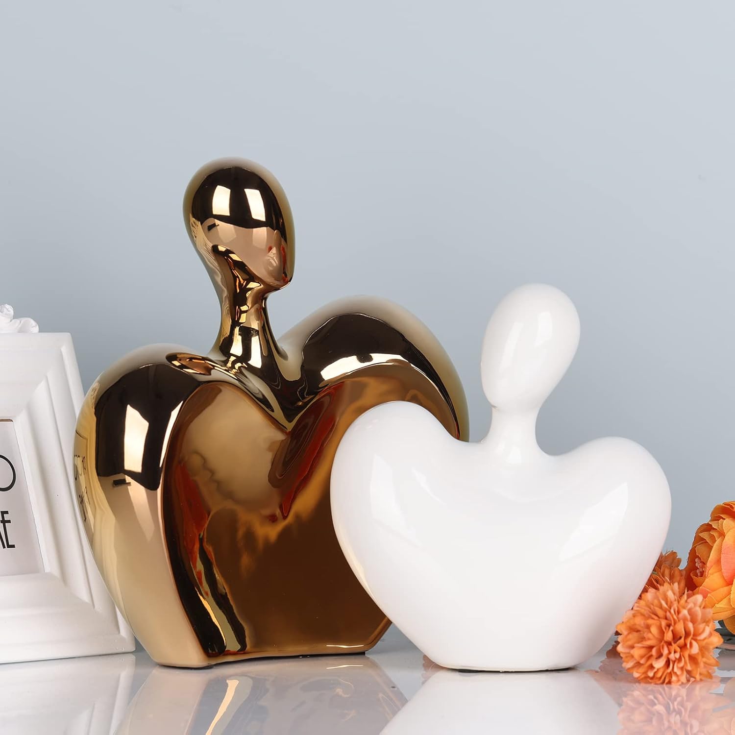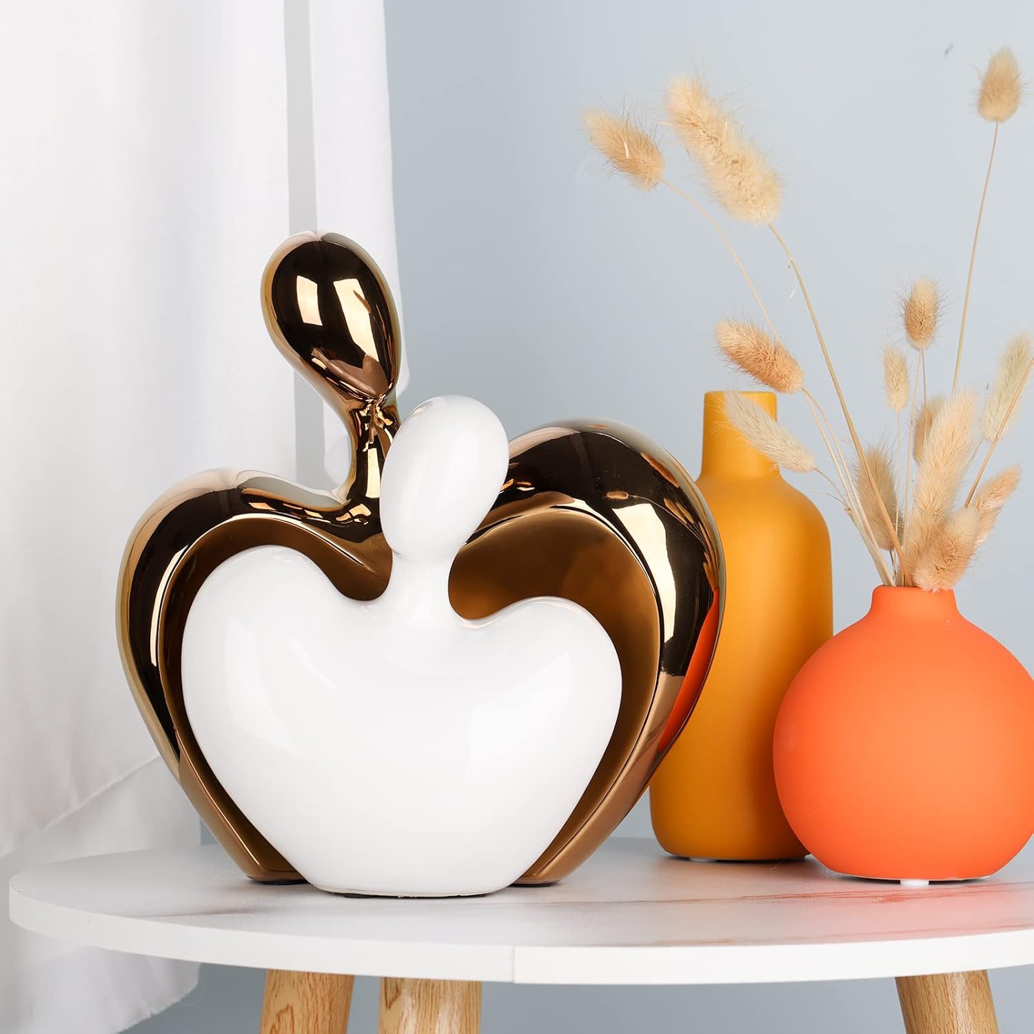 White and Gold Aesthetic Room Decor Accent,Couple Sculpture Decor,Tv Stand Funky Table Centerpiece, Abstract Art Ceramic Statue And Sculpture, White Decor for Living Room, Bookshelf Decorative Objects