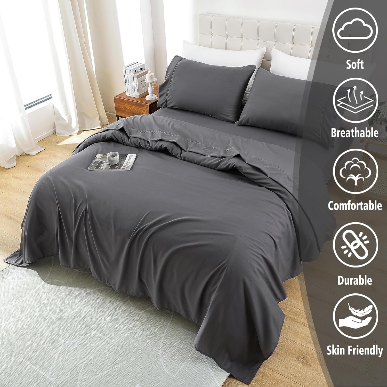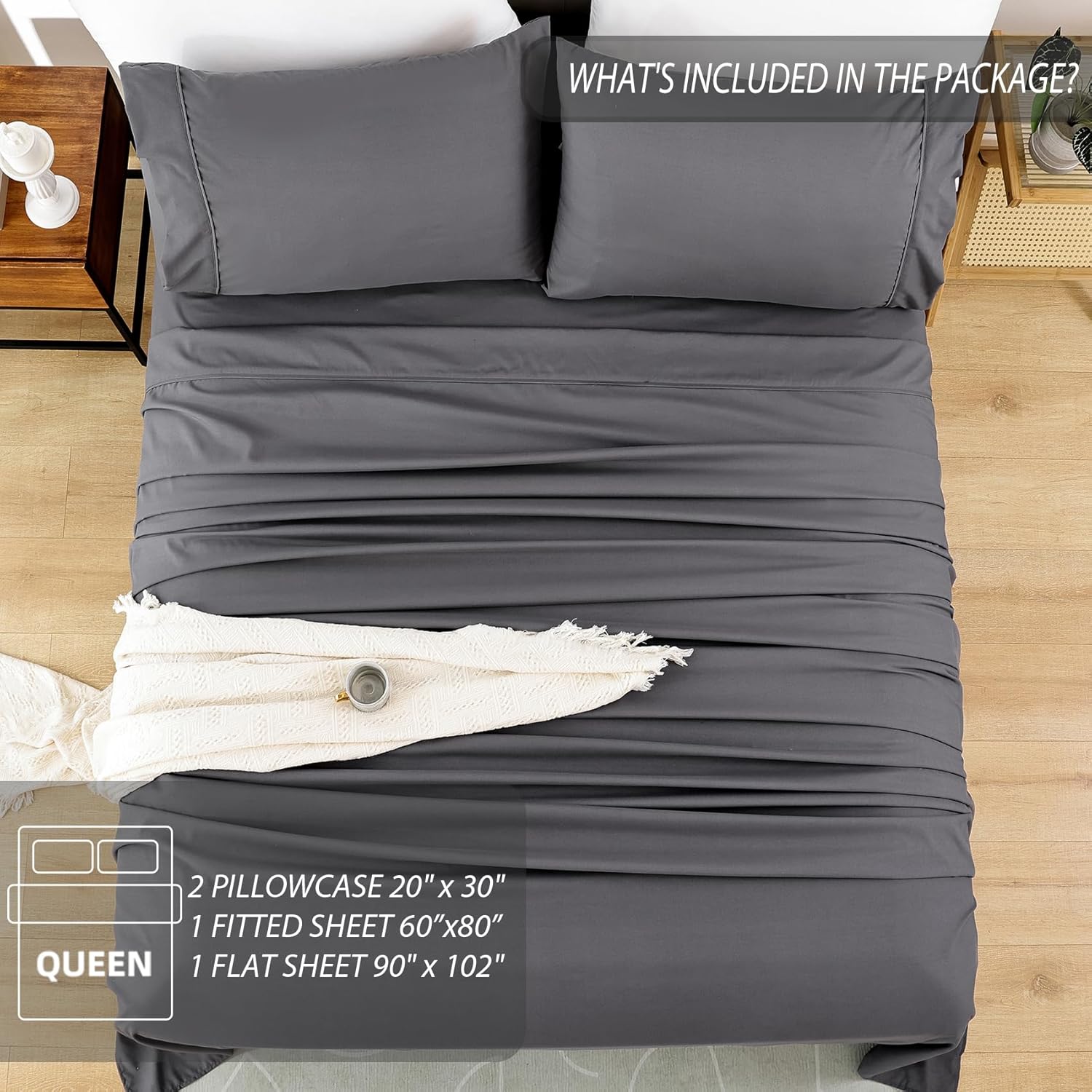 QUEEN SIZE SHEET SET – 4 Pieces cooling sheets set includes 1 flat sheet 90″ x 102″, 1 fitted sheet 60″ x 80″(16-inch-deep pockets fits up to 6-15 inches mattress height.), 2 envelope closure pillowcase 20″ x 30″. Please note that the pillow inner and comforter are not included.