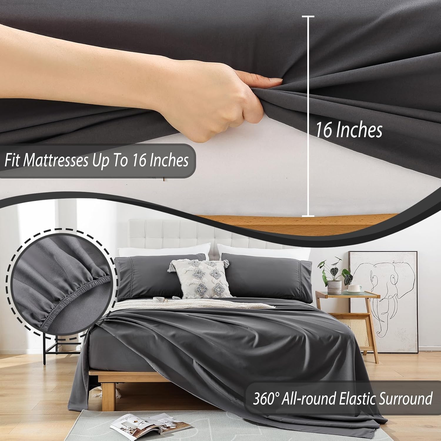 EXTRA DEEP POCKET FITTED SHEET – All-around stretchable elastic deep pocket fitted sheets are designed to fit all mattresses depths 6 to 16 inches deep. Stronger fit than silk sheets. No matter how you twist and turn while sleeping, the sturdy sheets will not slip off.