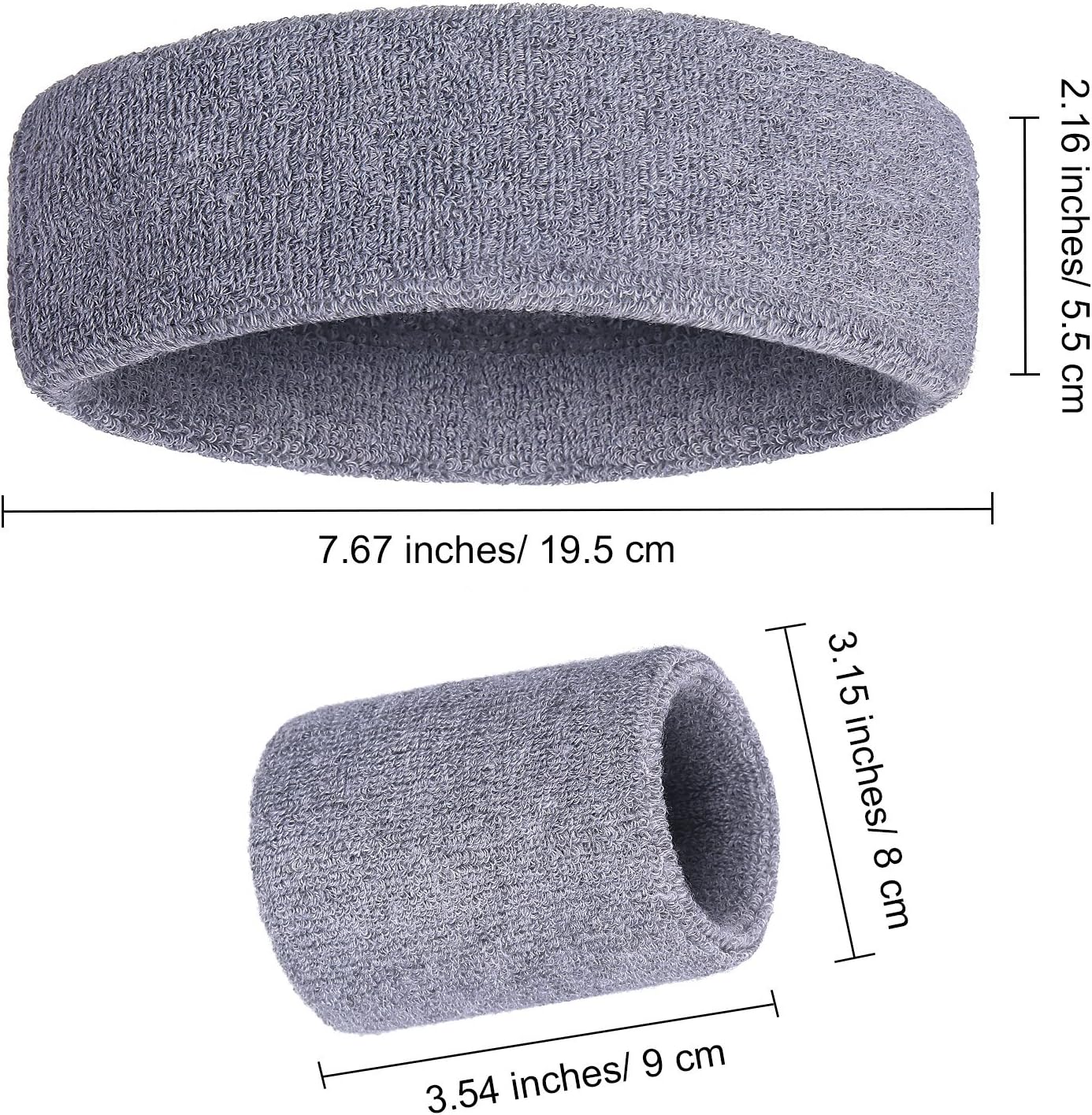 Elastic sweatbands: the normal size of headband is 7.67 x 2.16 inch and wristband is 3.54 x 3.15 inch (L x W), but they all have good elasticity which make them fit most men and women’s heads and wrists