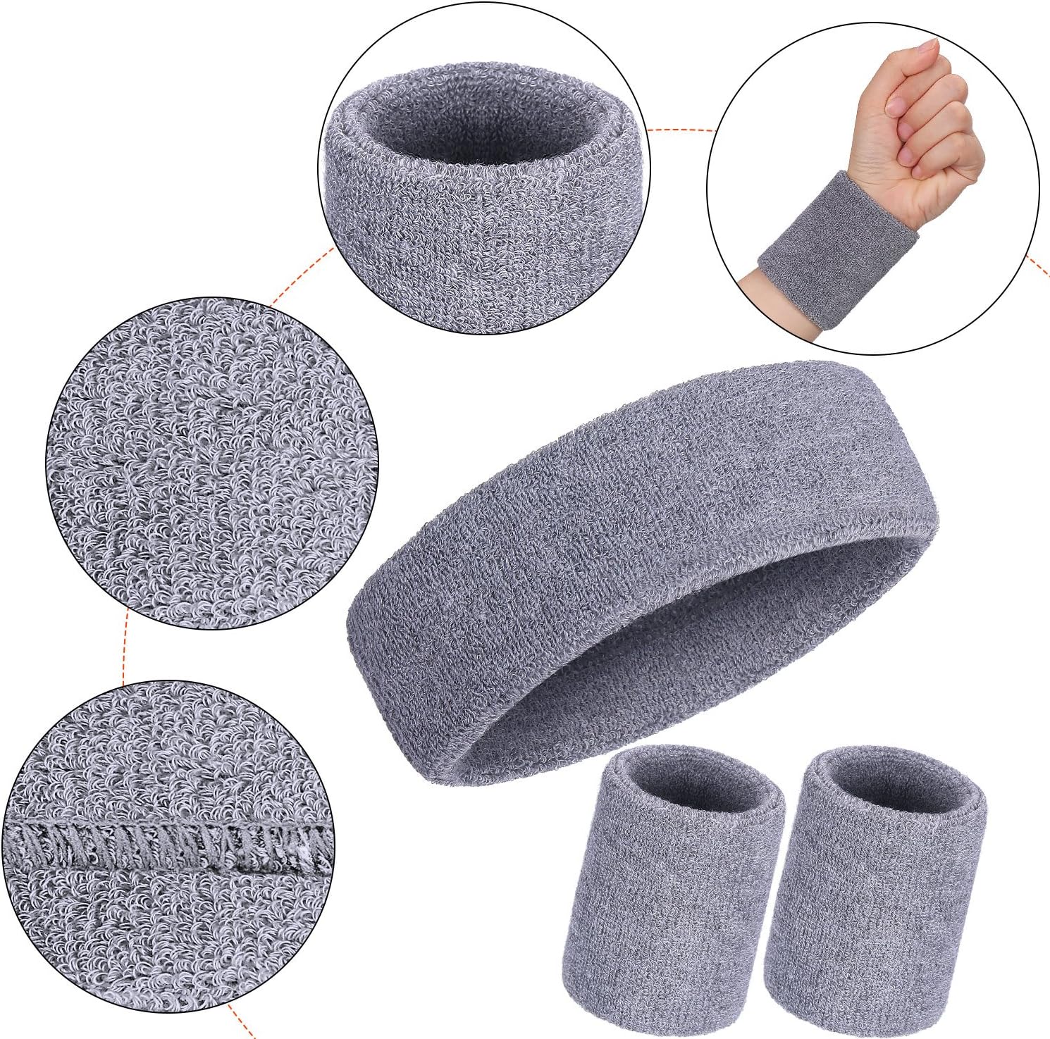 Comfortable sweatbands set: includes 1 pieces sweat headband and 1 pair of wrist sweatbands, which made of 85% cotton, 12% spandex and 3% nylon, soft, lightweight and elastic for comfortable wear