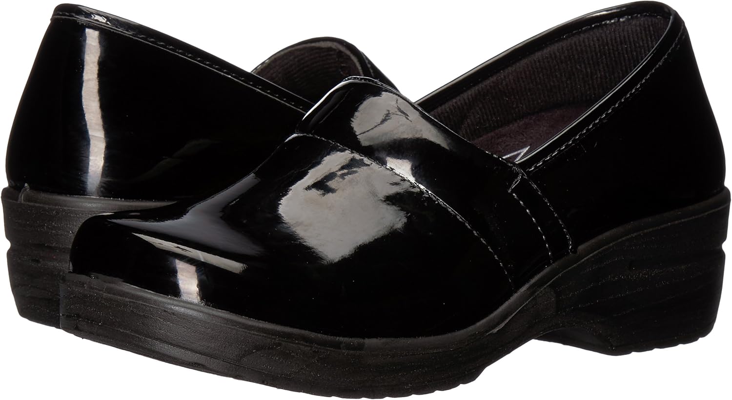 I don’t dislike anything about this chunky style shoe. I did down size since the heel height is about 1.5 inches. I go up a size for toe room on a 2 inch heel. A few folks mentioned a thick band across the top of the shoe making the shoe uncomfortable across the top of your foot. I didn’t find that to be a problem unless you wear thick socks. I have about every color and style of the patent leather look shoe. I think they’re fun and super comfy if your on your feet all day. Most are slip resistant. Also width is good for an average foot. Wipe clean with a damp cloth. They are warm to wear in the summer plus I always wear socks. But I work in an a/c environment so no problem. I’ll get another pair of the solid black since I wear them so often with suit jackets and black pants.