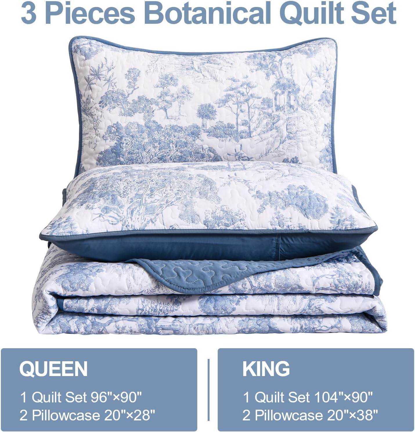 🌱Twin Size Quilt Set: 2 Pieces botanical printed quilt set include 1 quilt (86″x 68″) + 1 pillow sham (20″x 28″). The lightweight blue quilt is reversible, so you can mix up the style as the seasons change from summer to winter.