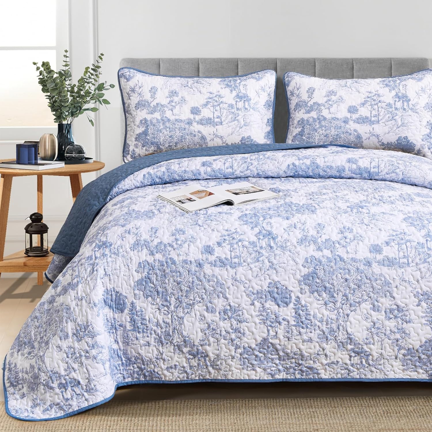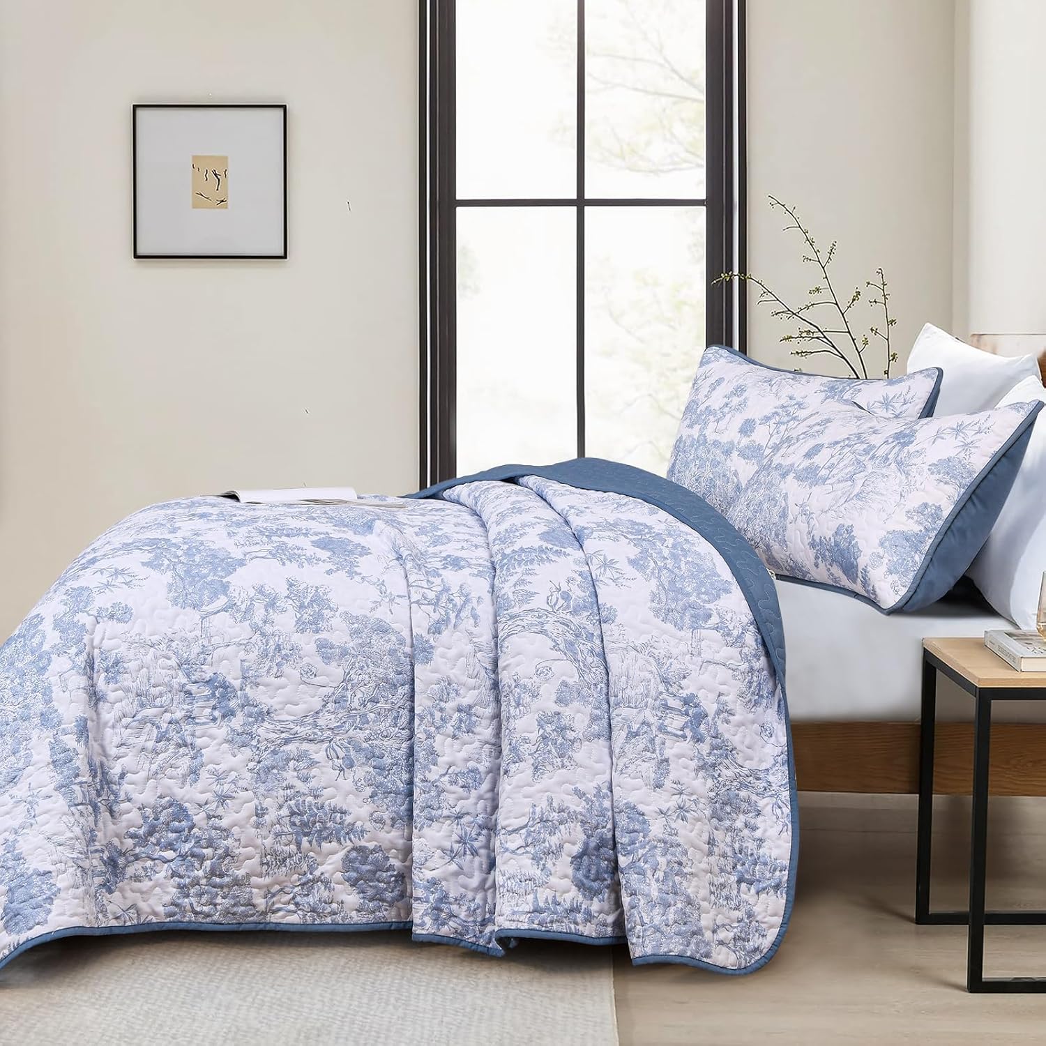 9 reviews for WONGS BEDDING Blue Quilt Set Twin Size, 2 Pieces Botanical Bedspreads Set Lightweight Microfiber Blue Plants Pattern Coverlet Home Decor for All Seasons(86″×68″)