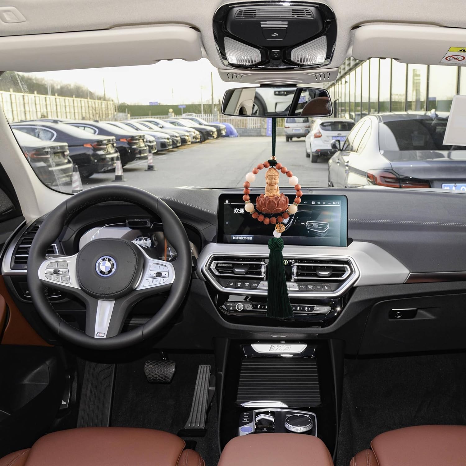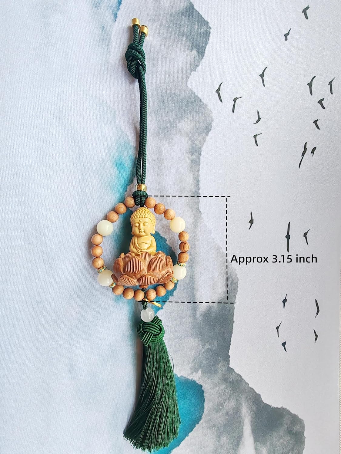 Wood Buddha for Car and Home Dec,Pusa Statue,Wall Hanging,Chinese Lianhua Feng Shui Dec,Pendant Ornament,Tassel,Blessings of Peace and Health (Green, Style B)